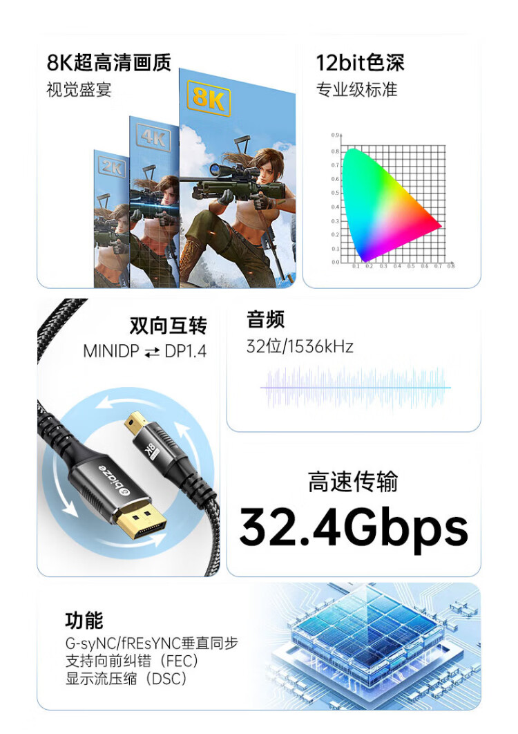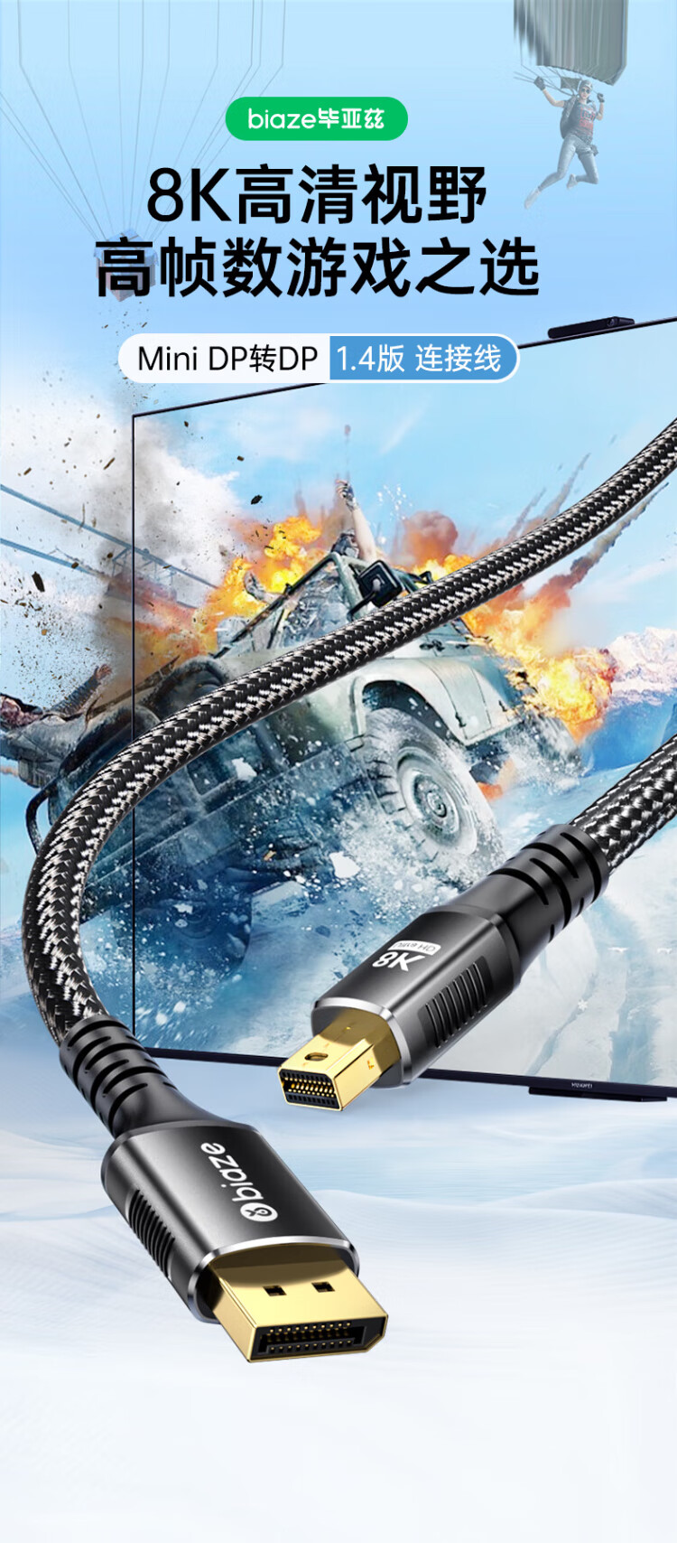 Biaz Mini DP to DP1.4 version adapter cable 8K60Hz HD 240Hz high brush e-sports grade video converter Apple Microsoft Surface notebook connected to the monitor 1 meter