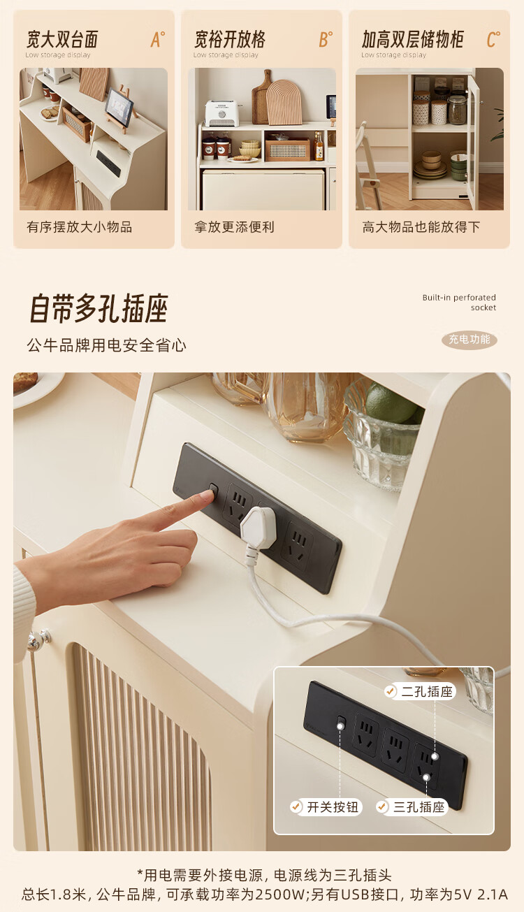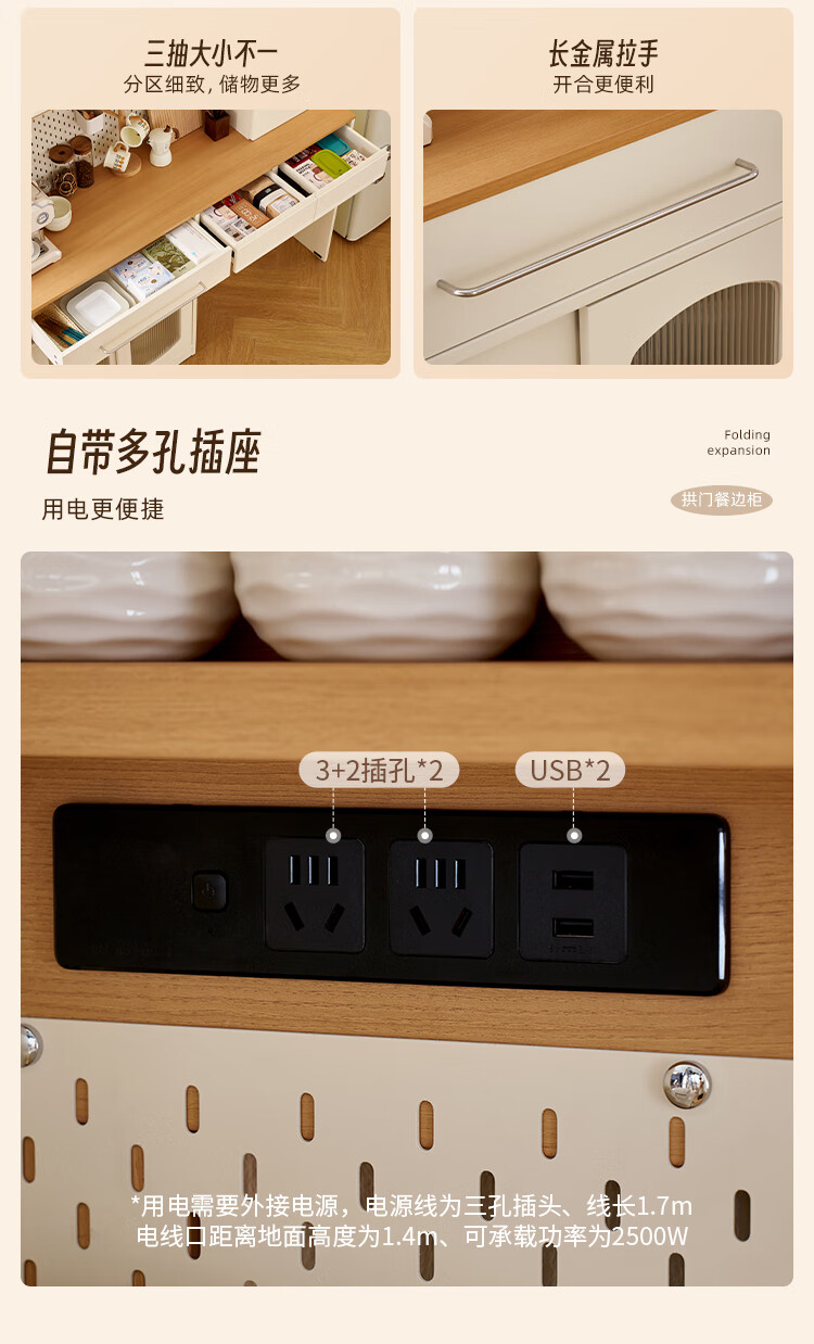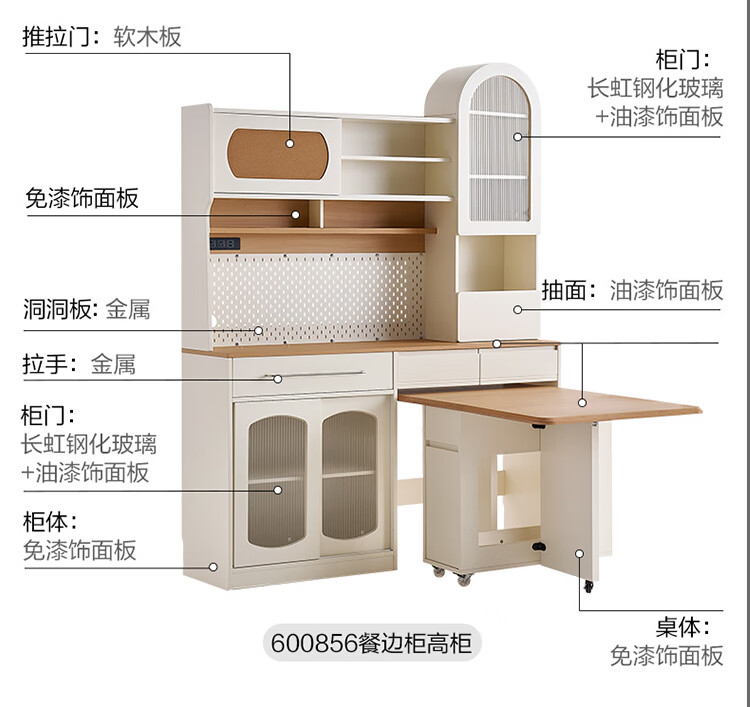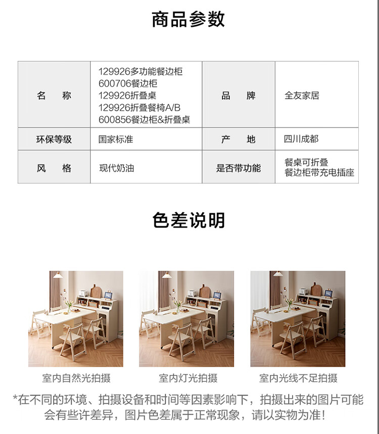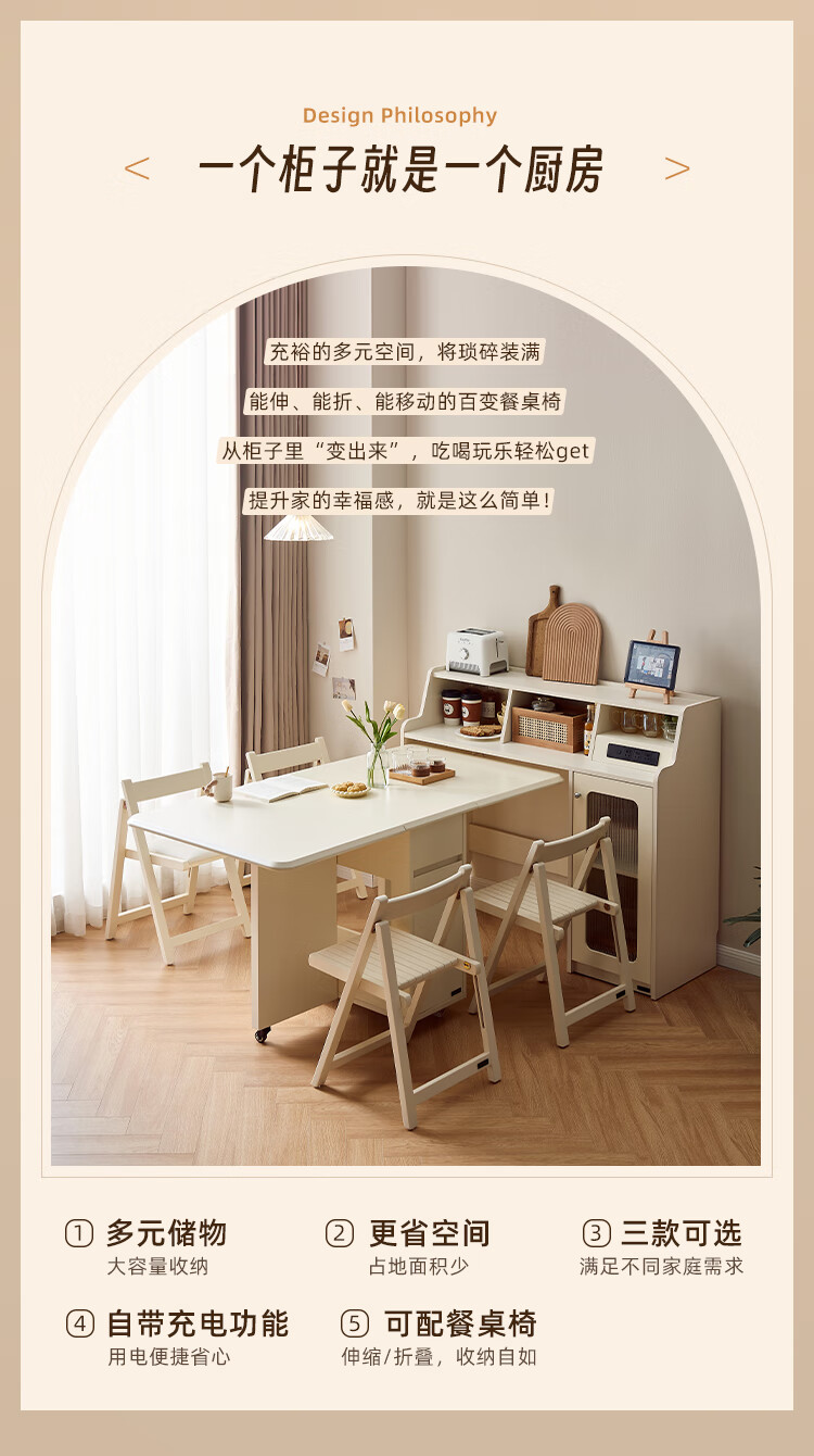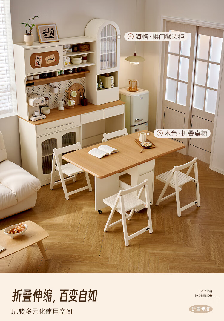 Quanyou Home Living Room Home Dining Table Modern Cream Style Multifunctional Sideboard Foldable Dining Table and Chair Combination Set