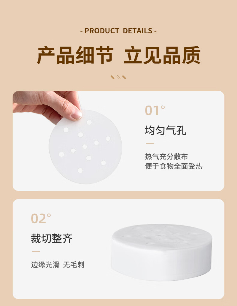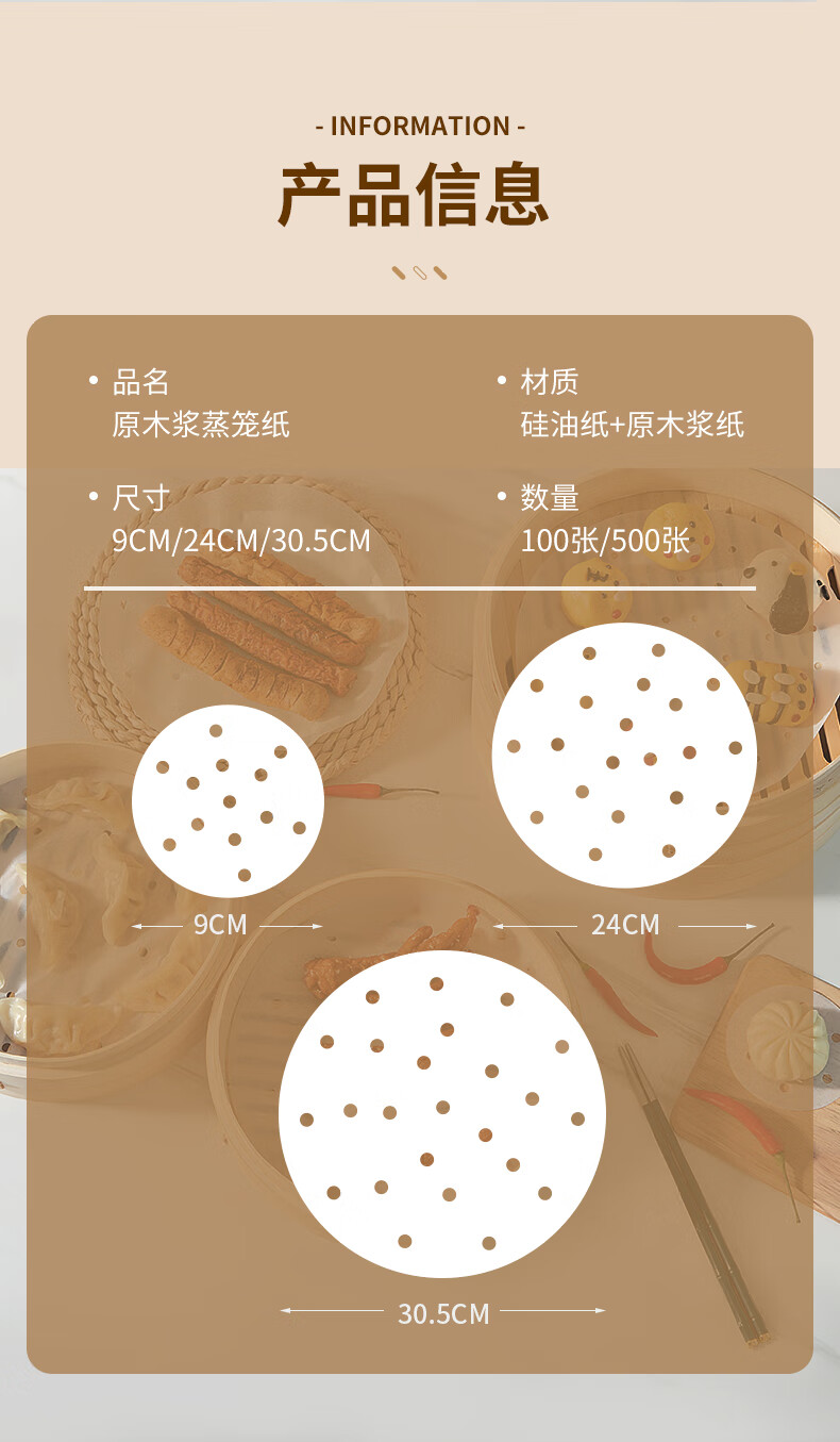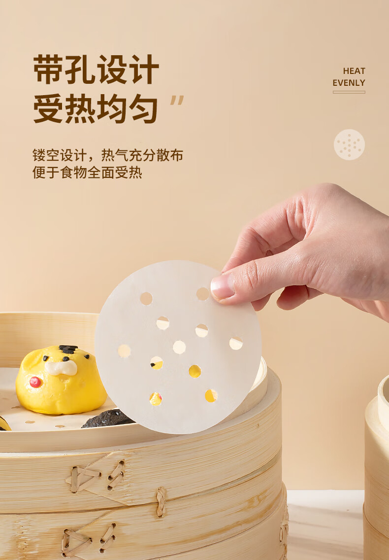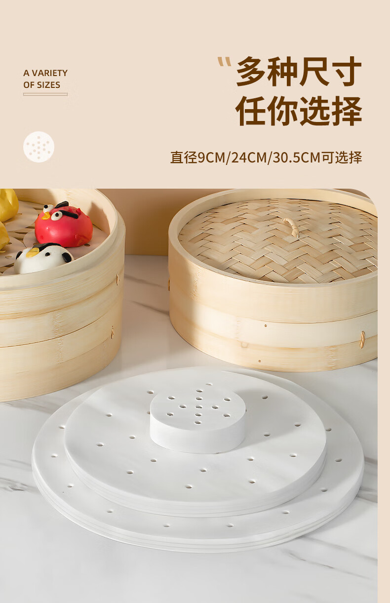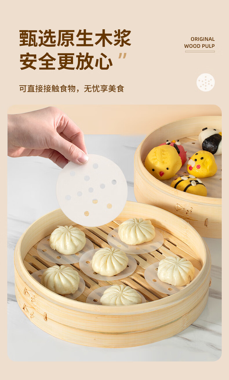 Temeiju disposable steamer paper food-grade steamed bun pad paper steamed bun paper small drawer cloth steamer paper pad 9cm*500 sheets