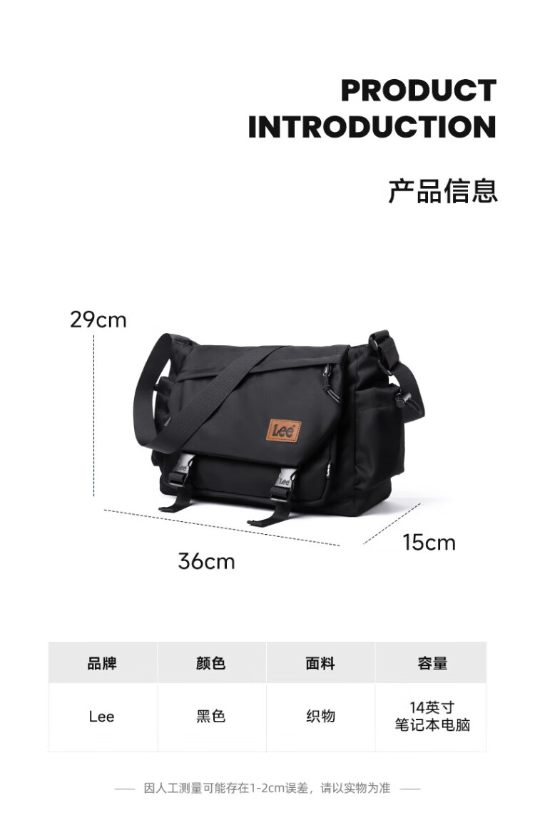 Lee men's crossbody bag 2025 new large-capacity shoulder bag women's casual lightweight messenger bag commuting outing shoulder bag
