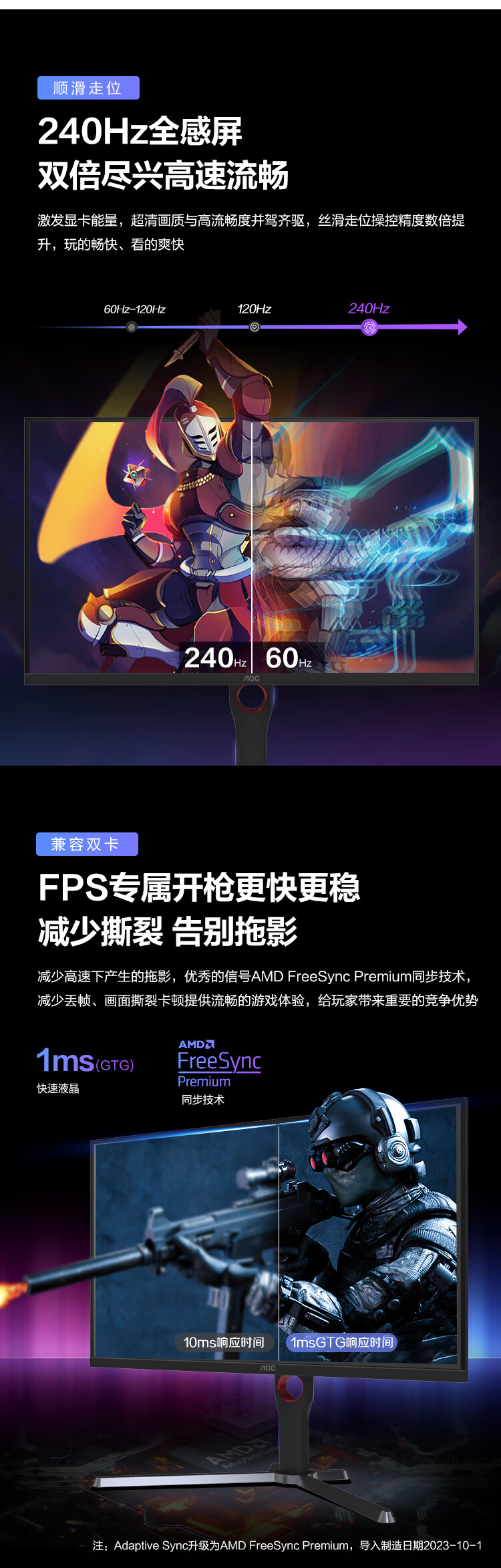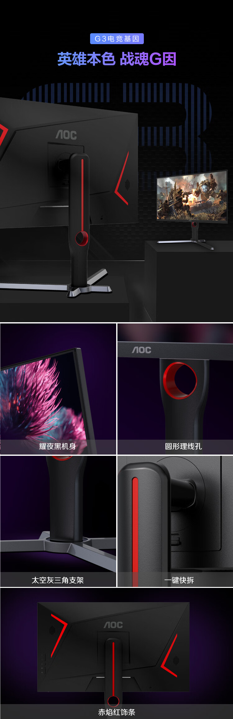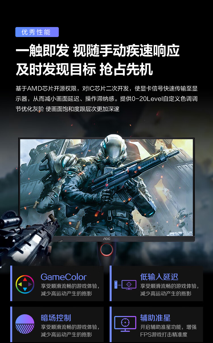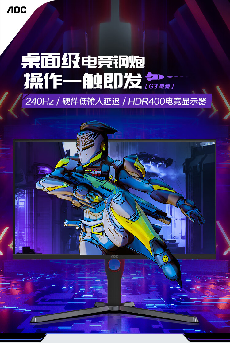 95% new AOC 27-inch 2K high-definition 240Hz IPS wide color gamut 0.5ms fast LCD HDR400 low blue light no flicker narrow frame gaming e-sports computer monitor Q27G3ZE