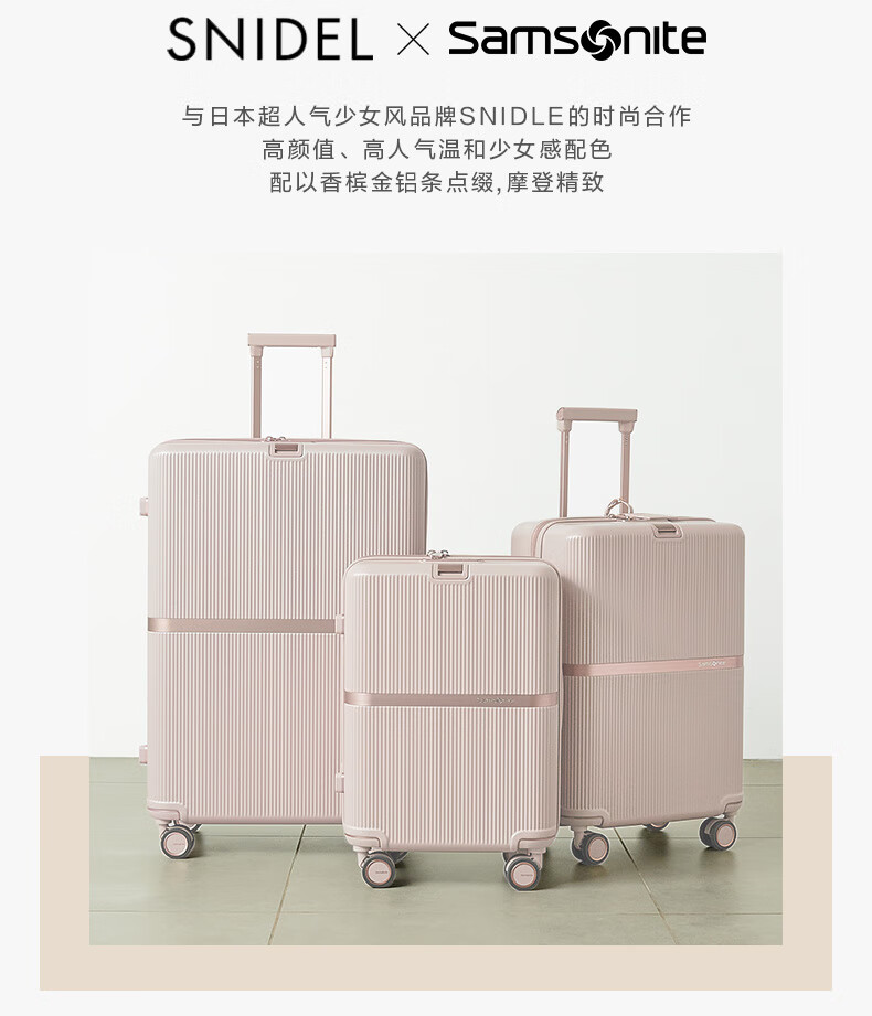 Samsonite suitcase 22-inch trolley case SNIDEL co-branded gold box HH5 light brown checked box