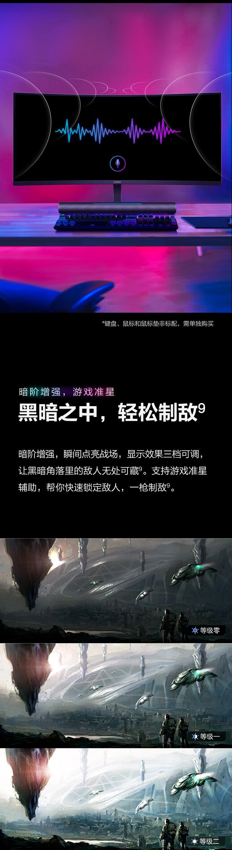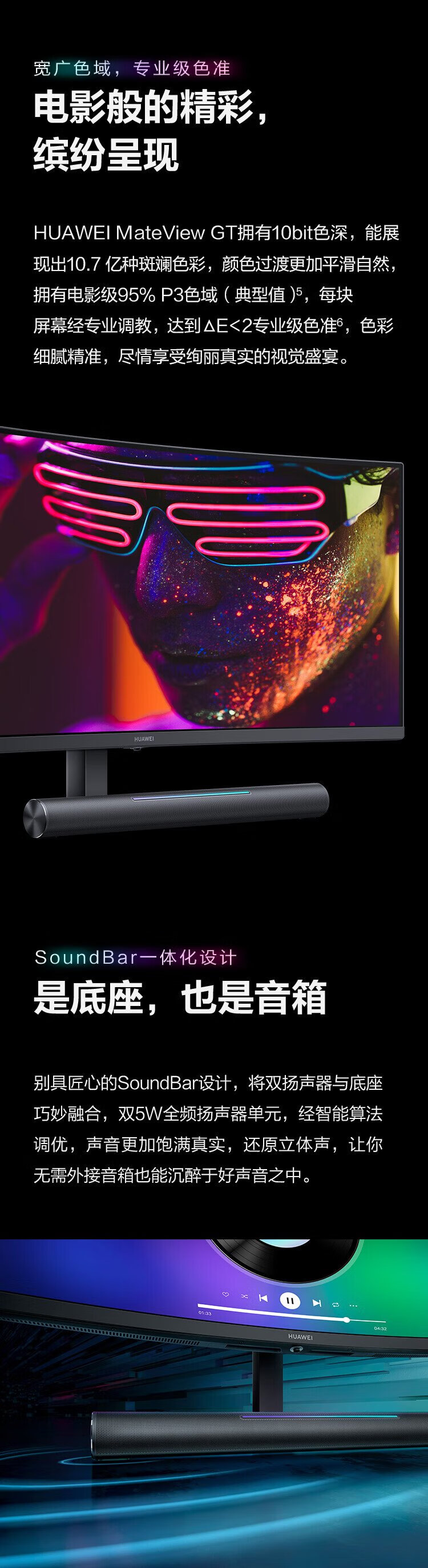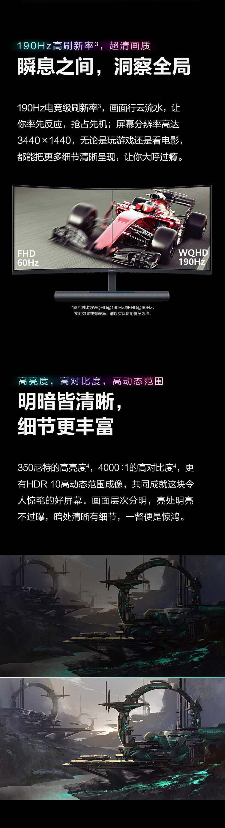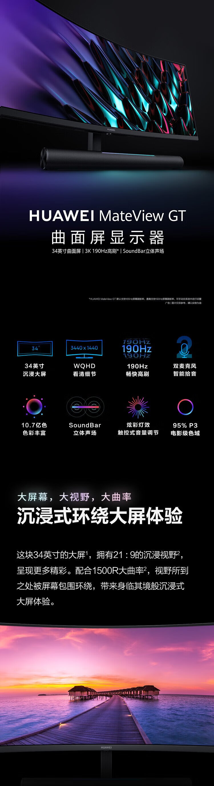 95% new Huawei (HUAWEI) 34-inch curved monitor WQHD 190Hz hairtail screen fast LCD 1ms Type-C SoundBar stereo field touch light bar gaming e-sports