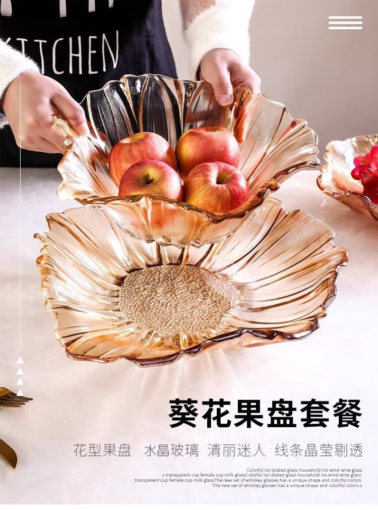 Genas light luxury high-end crystal glass fruit plate home living room fruit plate coffee table New Year's snack display dried fruit plate fruit bowl