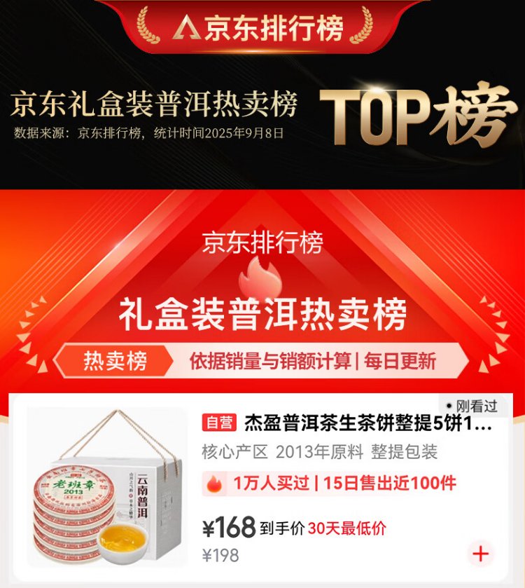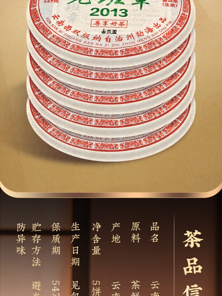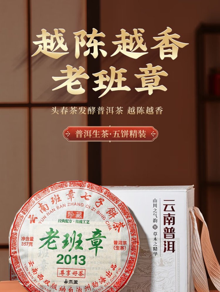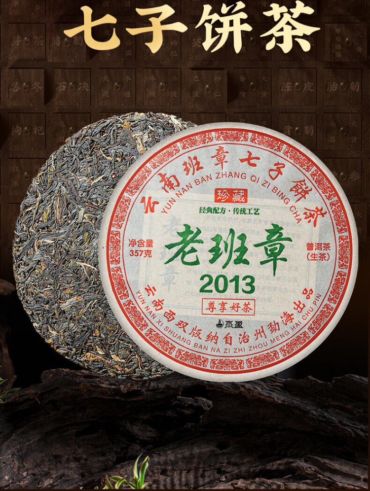 Jieying Pu'er tea raw tea cake 5 cakes 1785g 2013 raw materials Lao Banzhang Qizi cake tea sent to elder leaders
