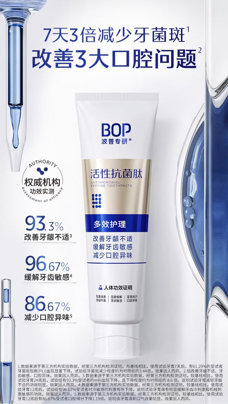 Bop Special Research (bop) active antibacterial peptide toothpaste anti-plaque multi-effect care 120g relieves sensitivity (new and old are shipped randomly)