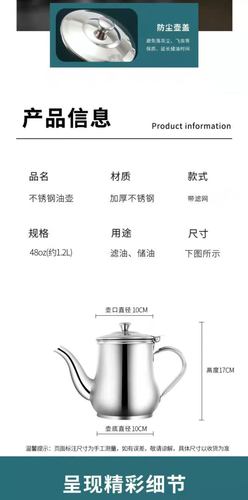Beijing 304 stainless steel oil pot oil tank household filter oil pot anti-leak oil belt filter seasoning large-capacity oil bottle