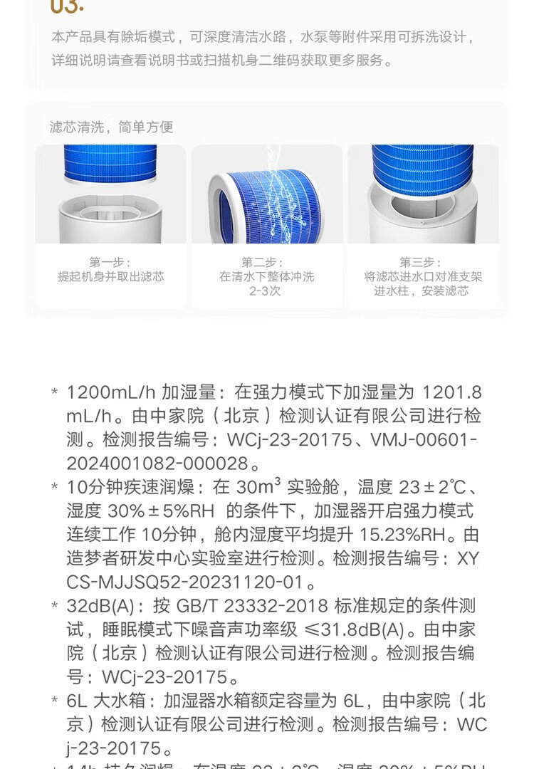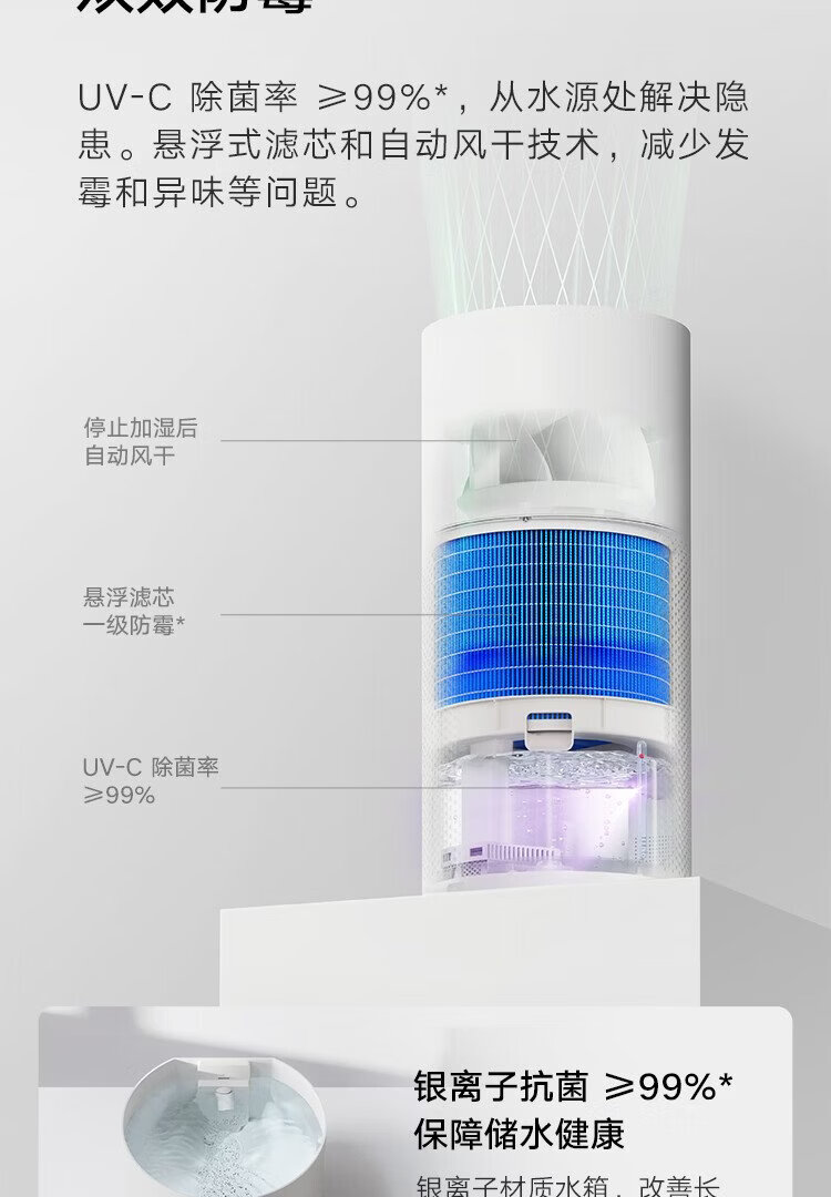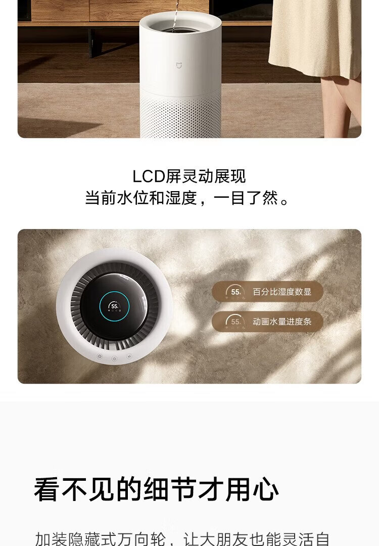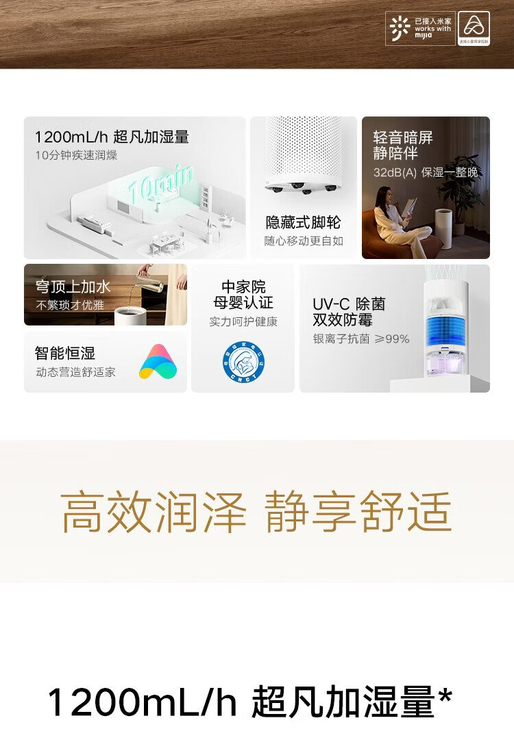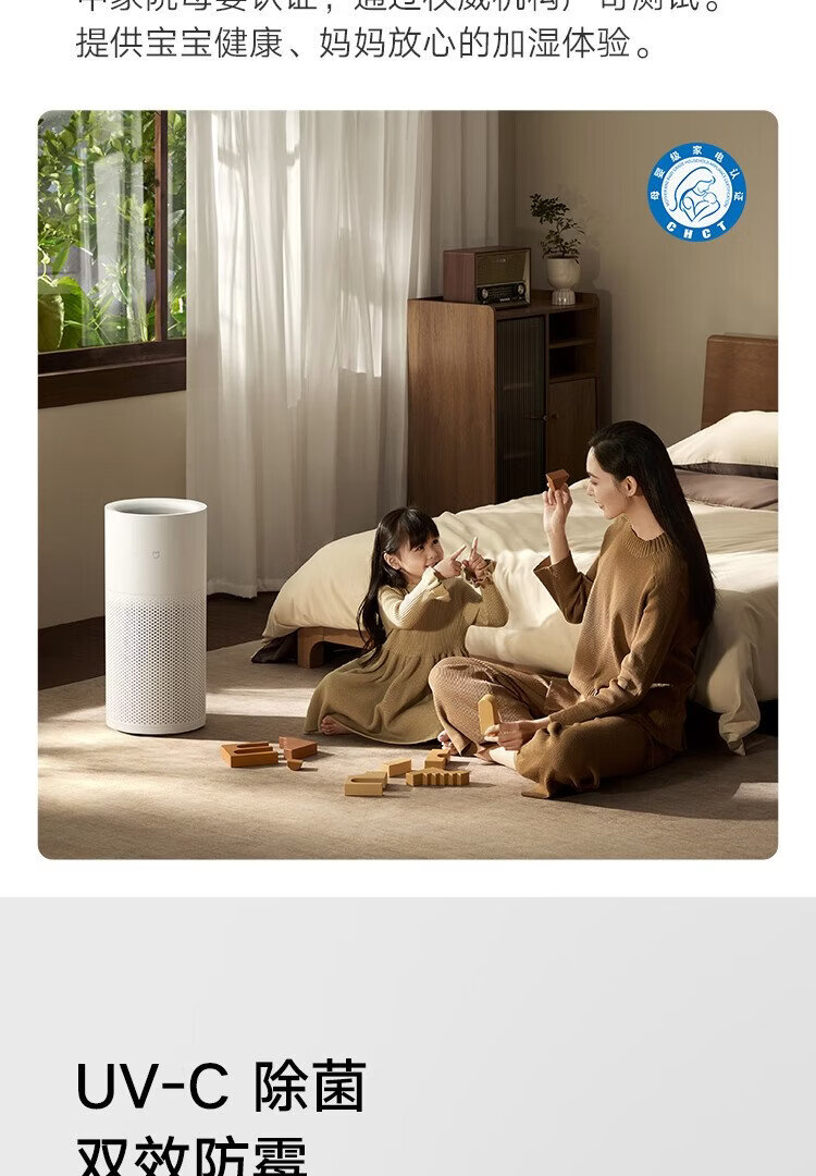 Mijia Xiaomi Air Humidifier Maternal and Infant Grade Certified Fog-Free Humidifier 3-1200 Bedroom Large Capacity Home Use for Infants and Pregnant Women 1200ml/h CJSJSQ03XY