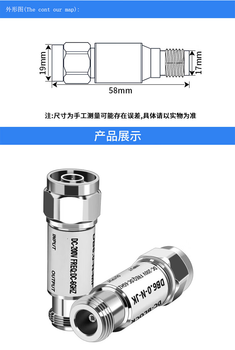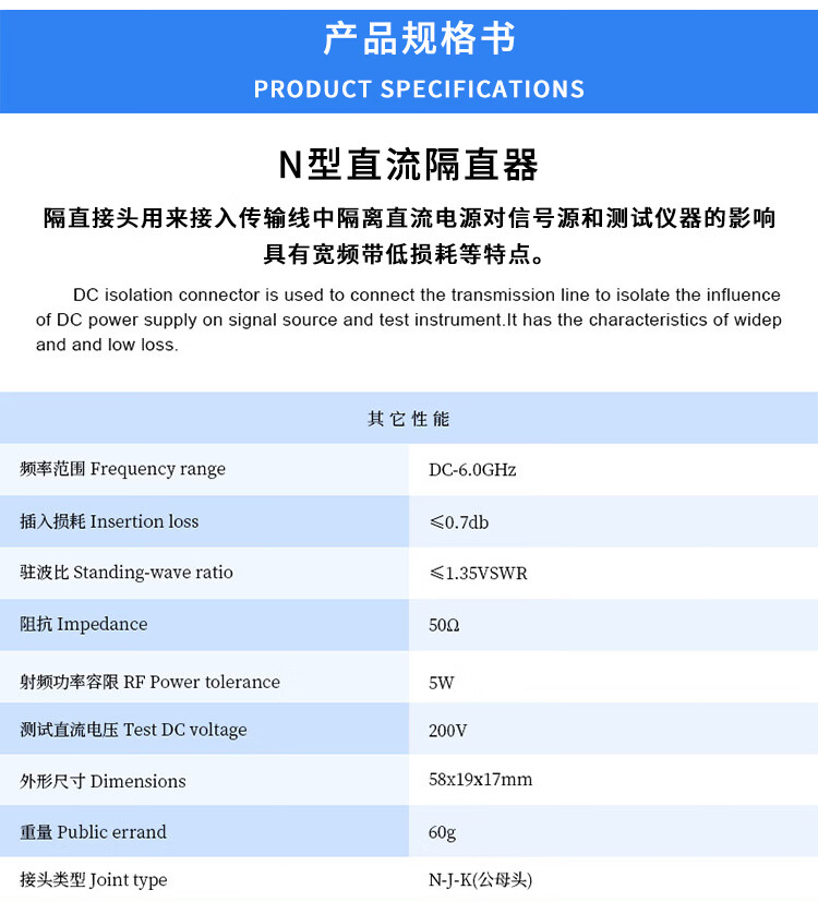 FUWEISHENG N-type DC isolator DC-BLOCK DC isolator N-type DC isolator frequency DC-3G J male K female FWS-A102