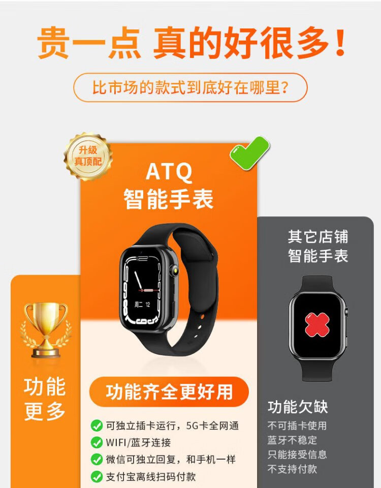 ATQ Disabled in class, long battery life, top version of smart children's phone watch, card positioning, 5G4G full network communication, youth primary school, middle and high school study watch for men and women