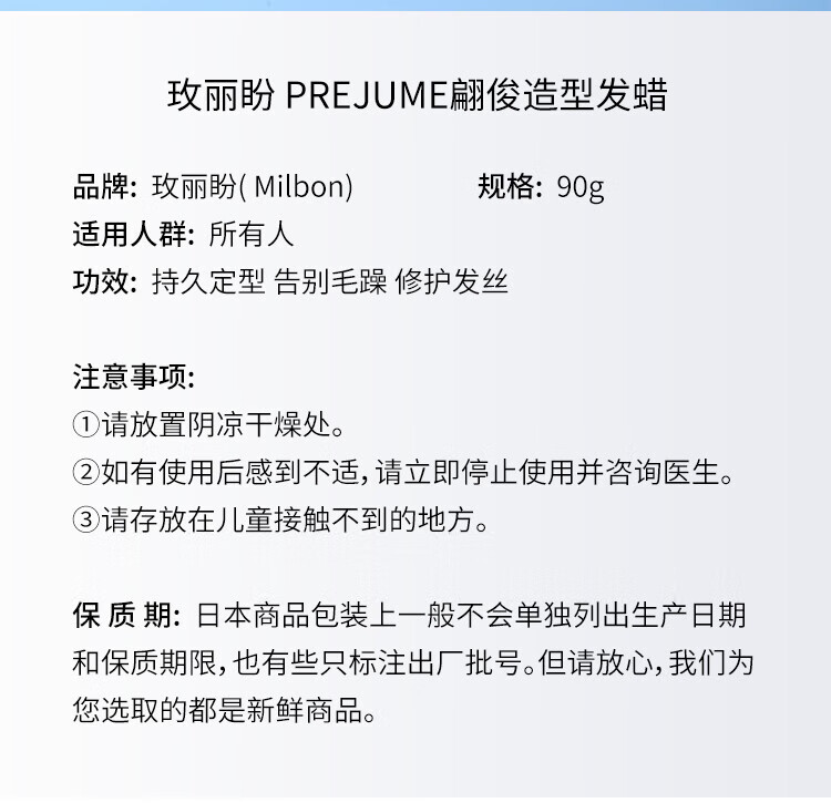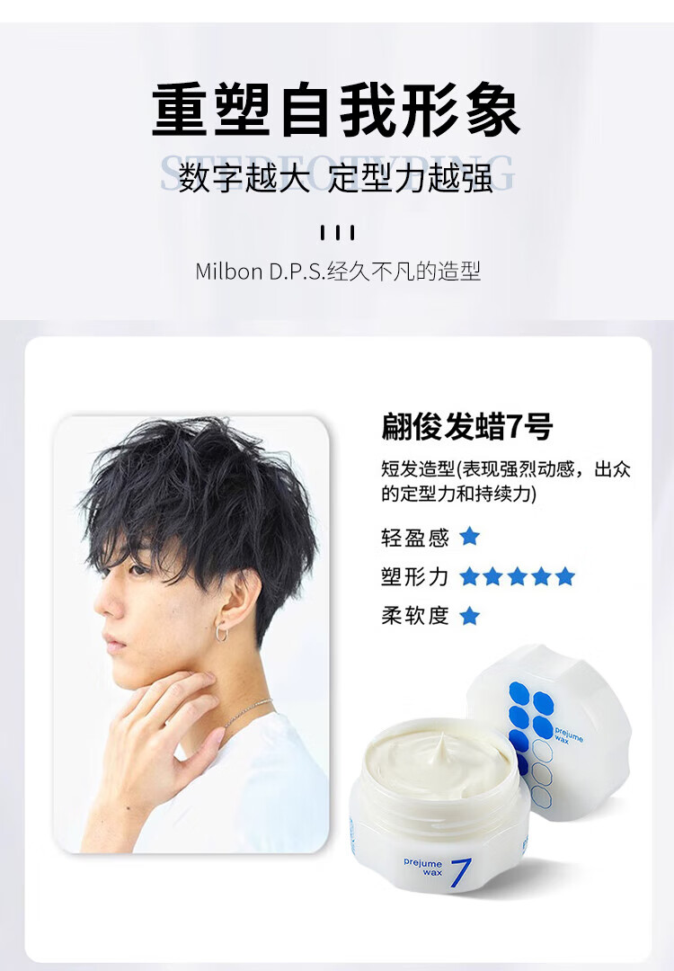 Meilipan Milbon Japanese prejume wax hair wax women's styling men's styling long-lasting hair mud No. 7 90g