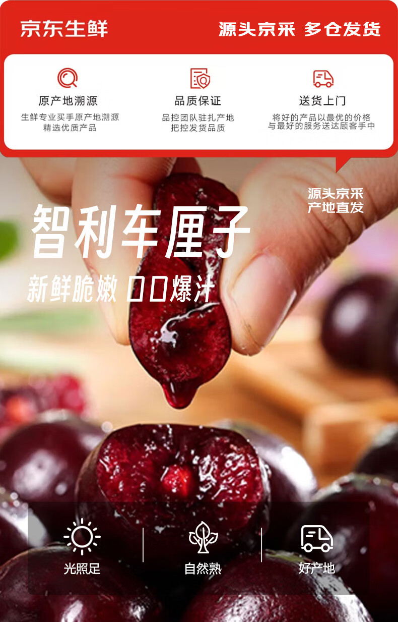 Jingdida imported cherries from Chile, gift box net weight 2.5 catties, single fruit 30mm+ 3J grade fresh food, direct shipping from the source, free shipping