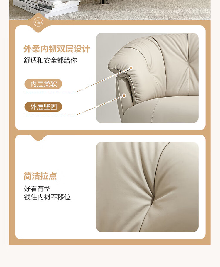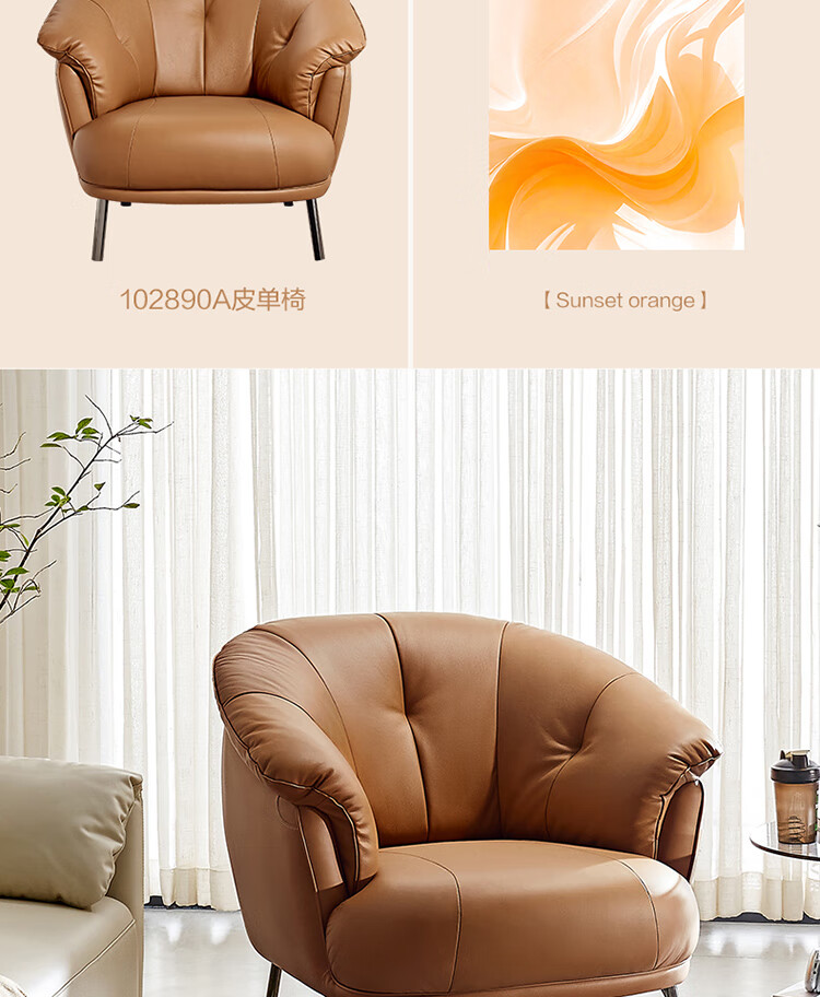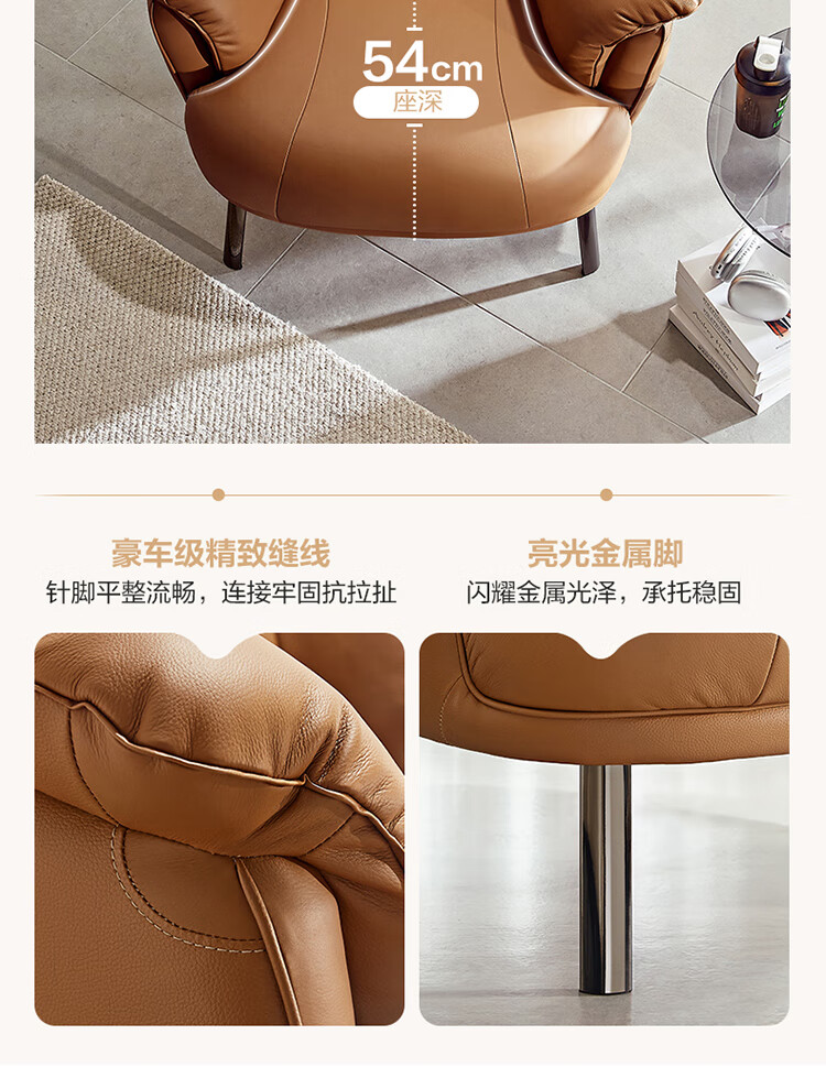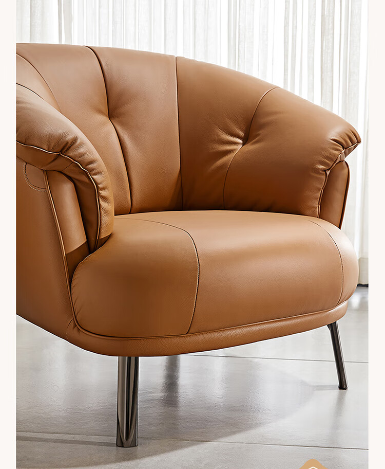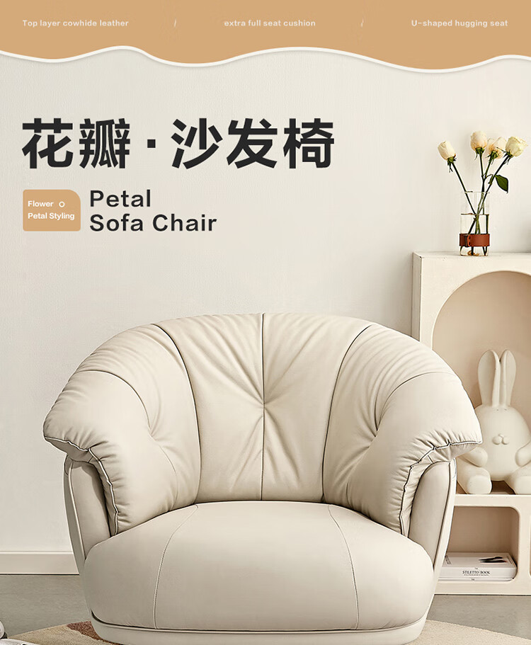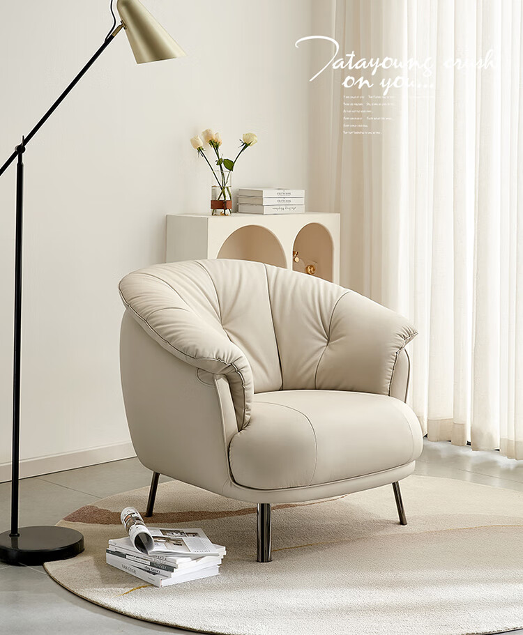Quanyou Home Leather Sofa Chair Simple Cream Style First-Layer Cowhide Living Room Small Apartment Single Sofa Chair Furniture