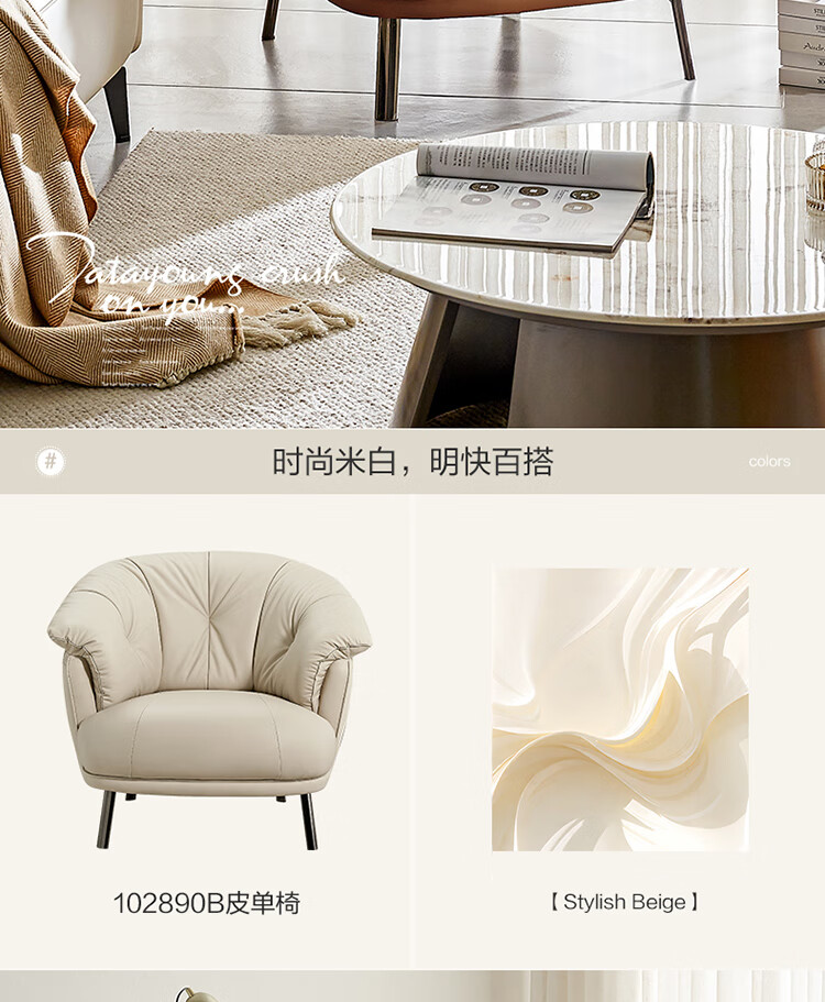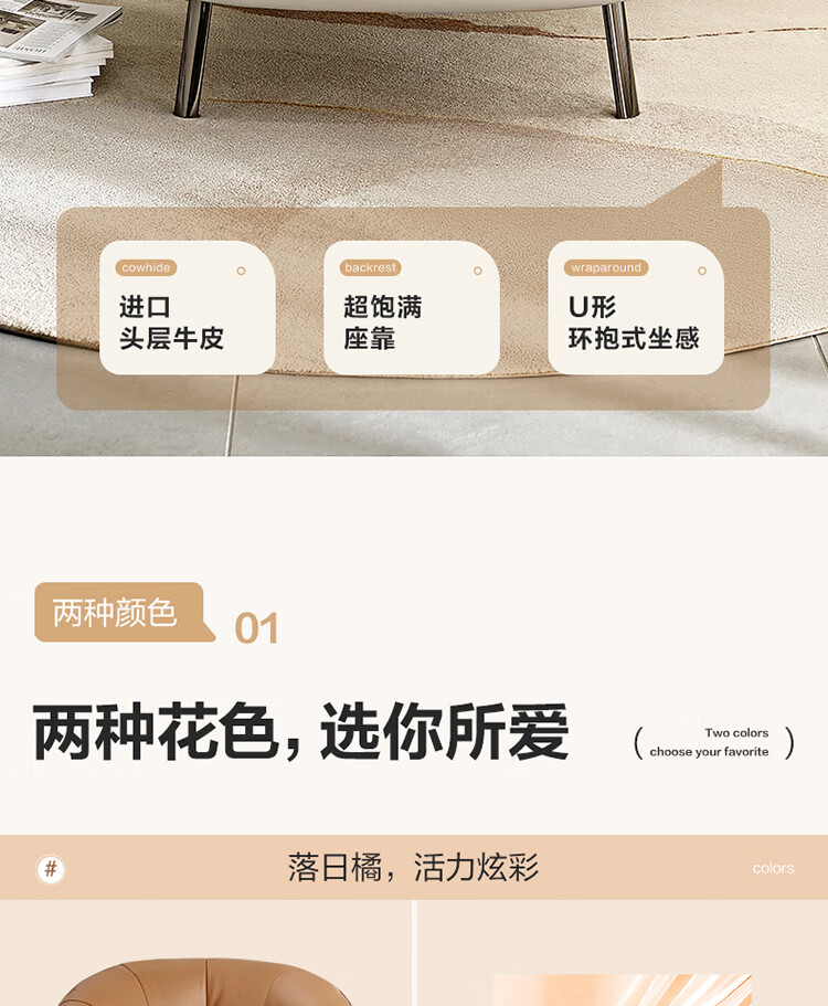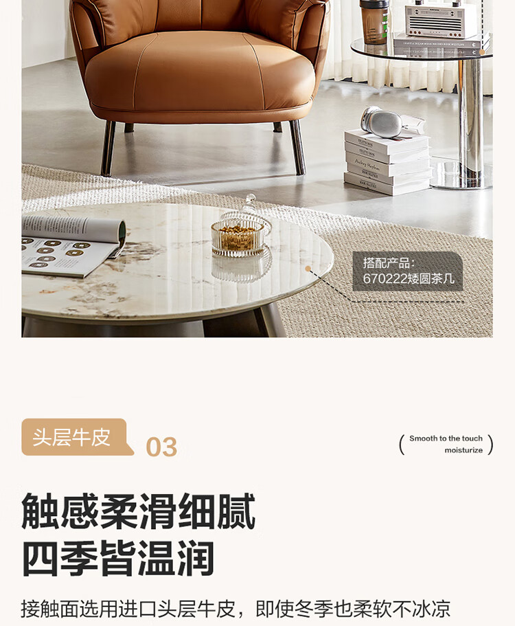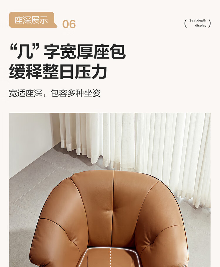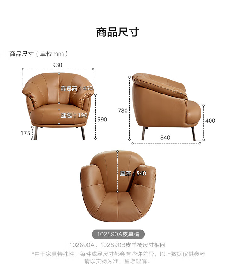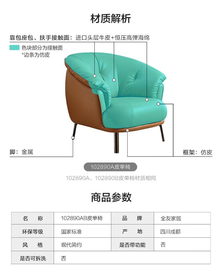 Quanyou Home Leather Sofa Chair Simple Cream Style First-Layer Cowhide Living Room Small Apartment Single Sofa Chair Furniture