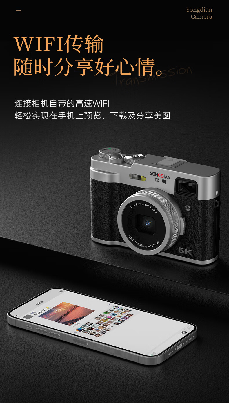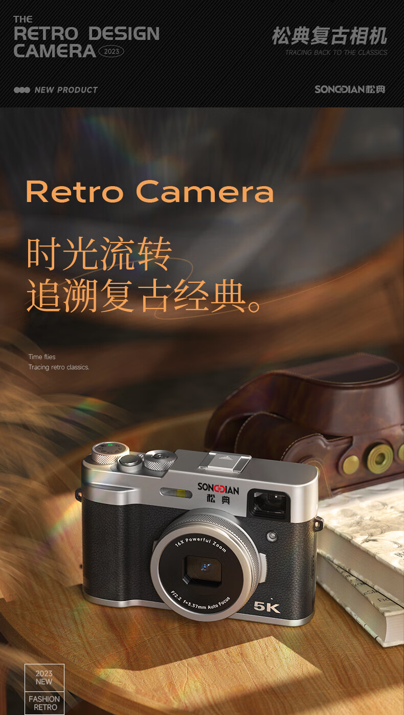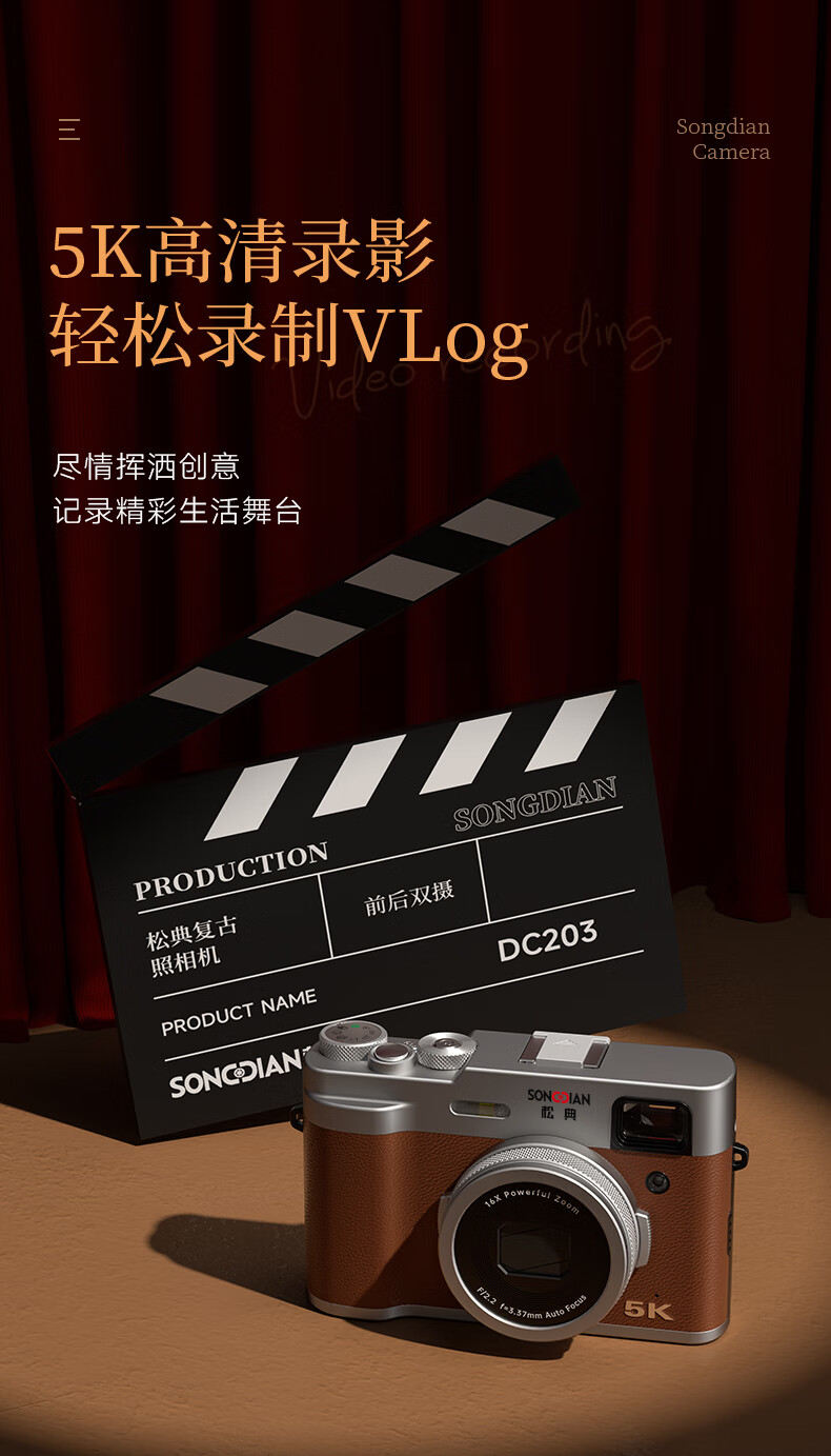 SONGDIAN HD digital camera 5K photography vlog entry-level student mirrorless camera dc203 official standard + leather case set 128G memory