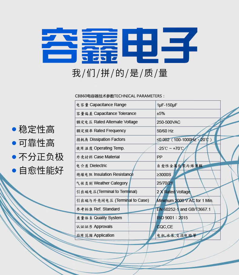 RXiN Rongxin electronic component starting capacitor CBB60/450/18uf series motor running capacitor polypropylene film capacitor 1 piece