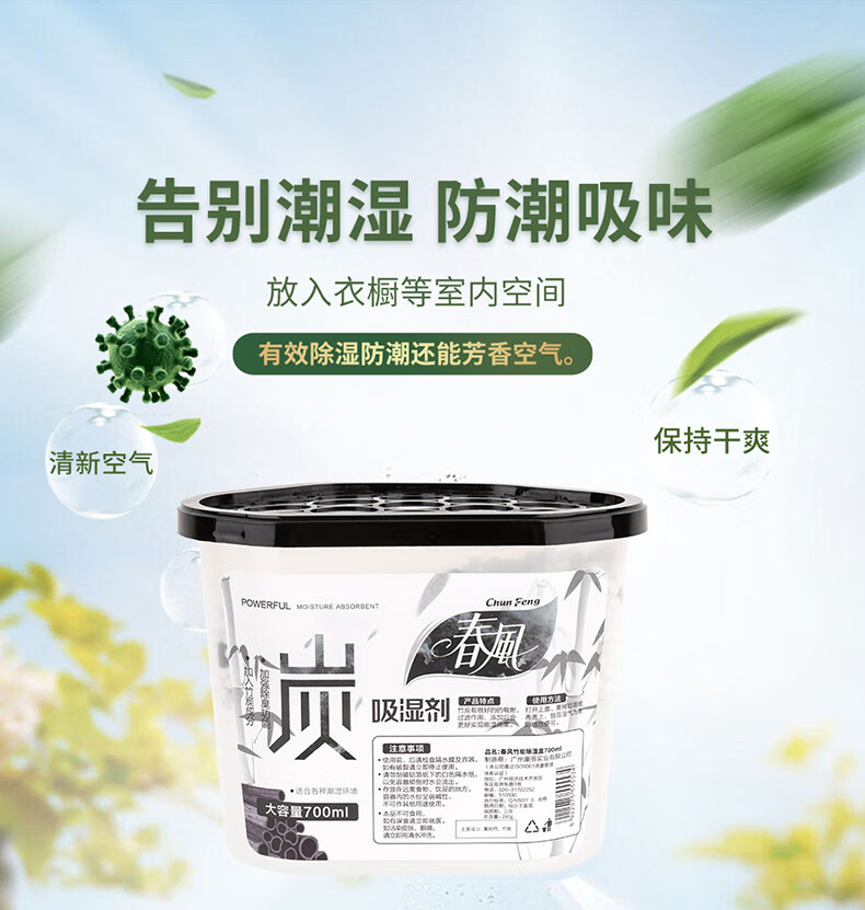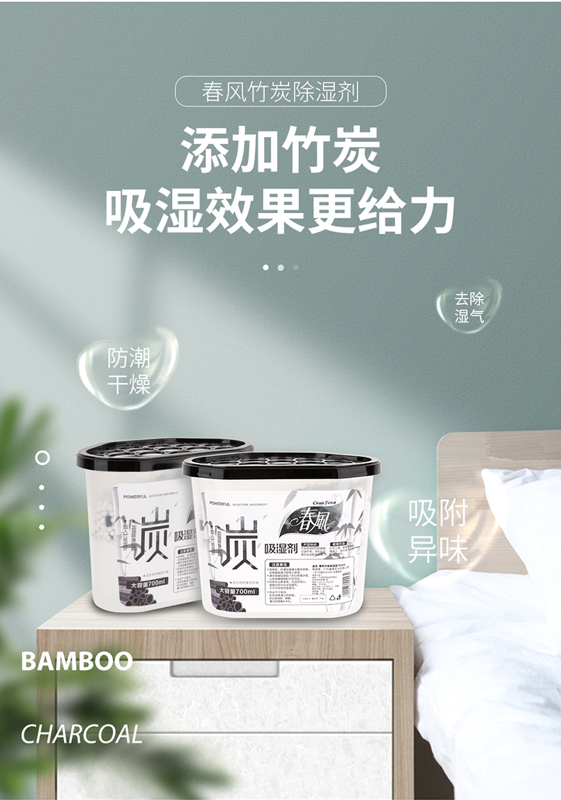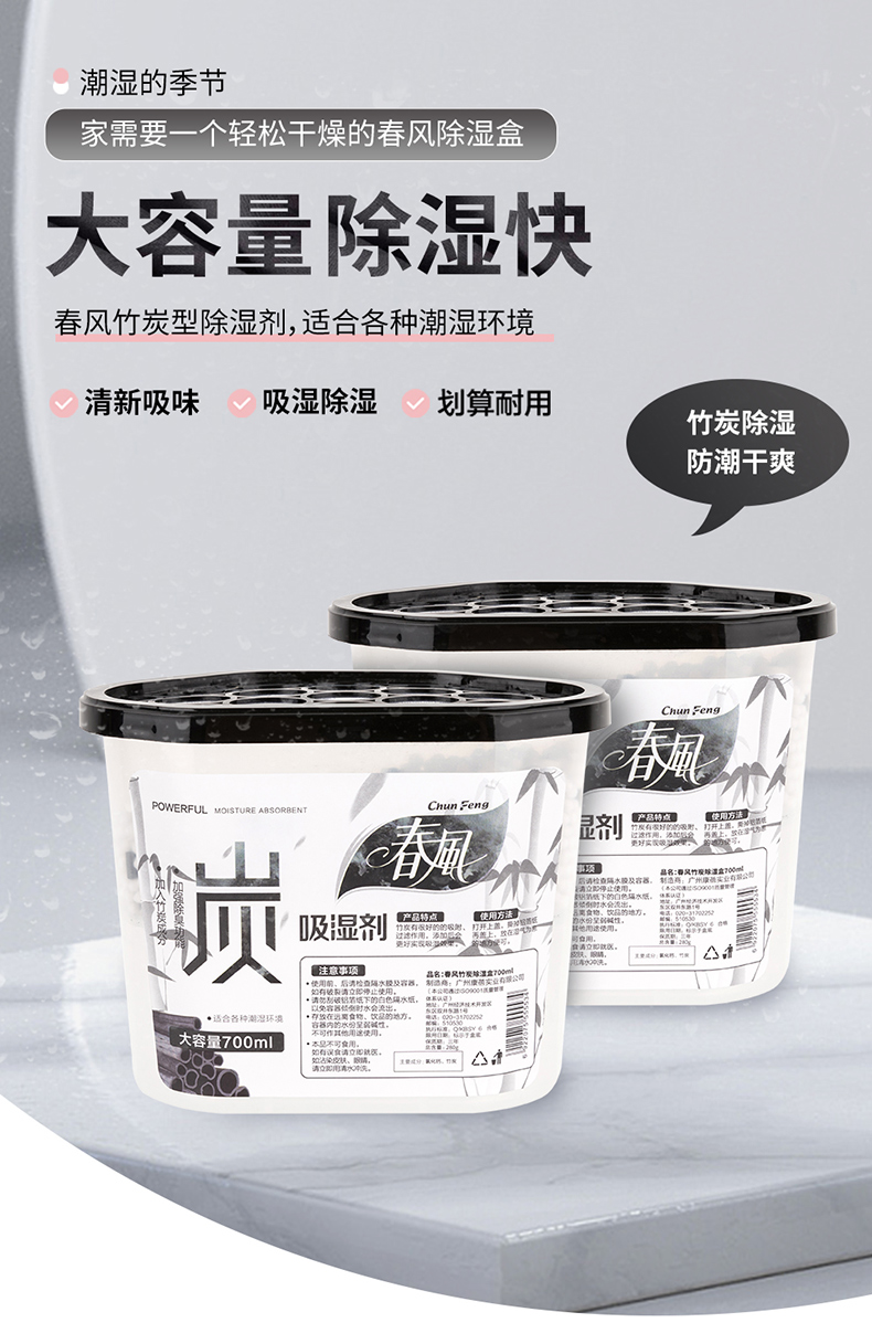 Spring Breeze Bamboo Charcoal Dehumidification Box 700ml*9 Box Desiccant Dehumidifier Dehumidification Bag Wardrobe Room Moisture-proof Moisture-Removal Mildew