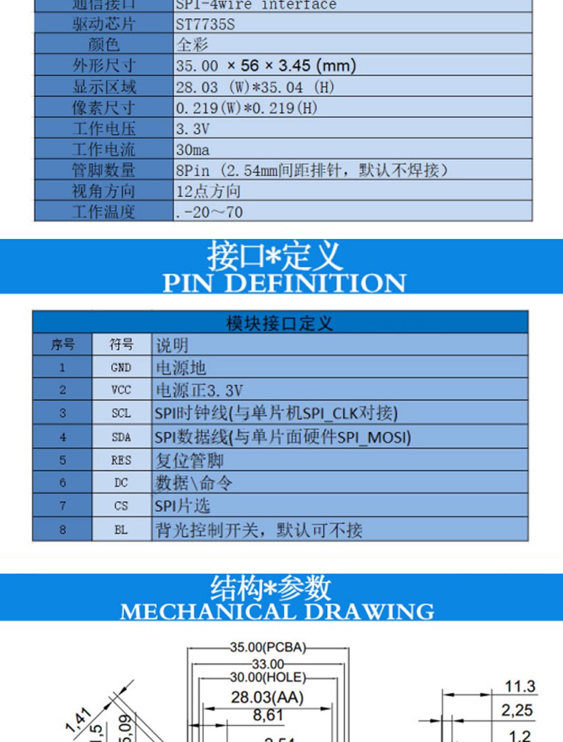Ouhuayuan 1.8TFT color TFT display HD IPS LCD module 128*160 SPI interface ST773