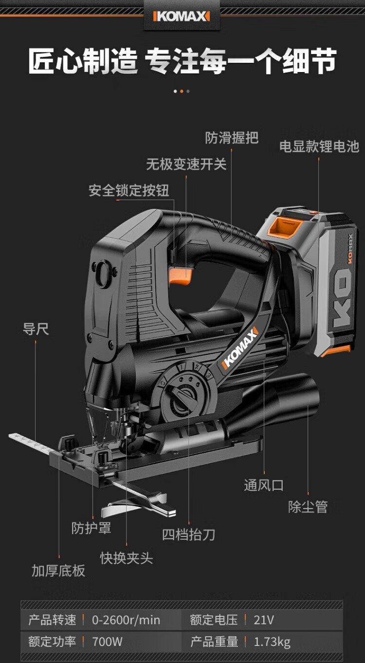Komax lithium-electric jigsaw, industrial-grade saw board artifact, multi-functional handheld wood board jigsaw, small cutting machine, woodworking tools