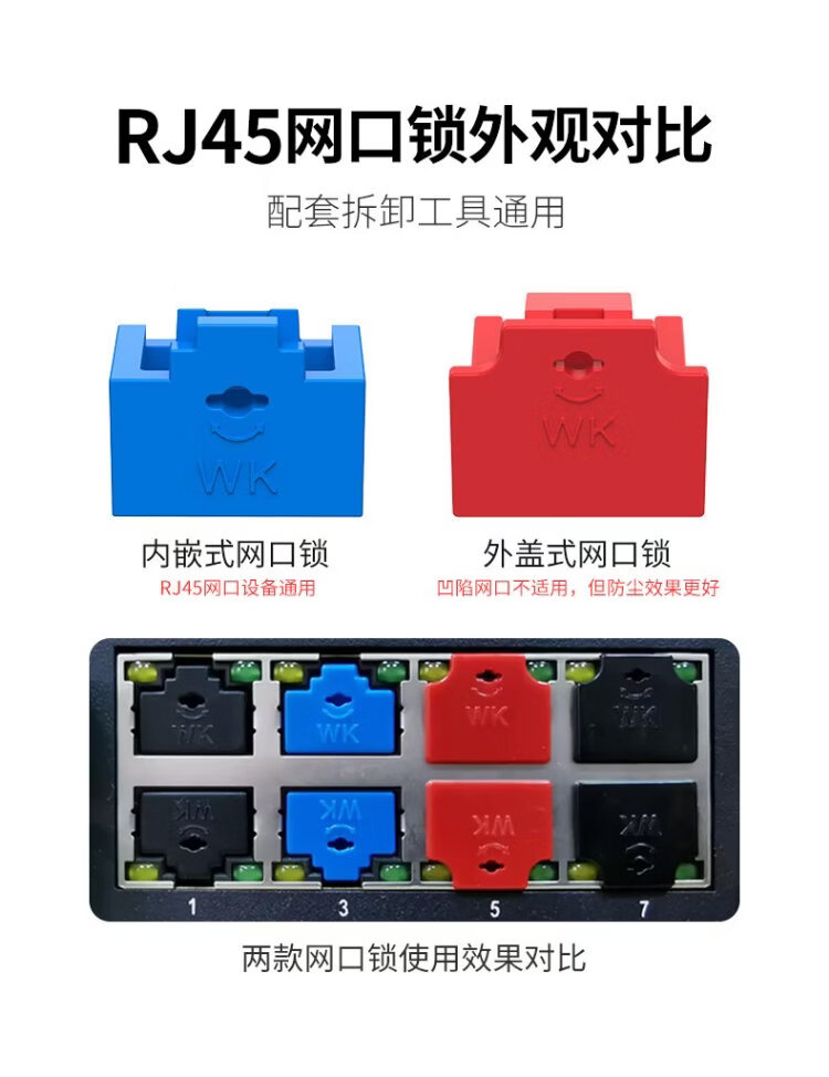 Weizhikong Network Port Lock Network Port Blocker Network Port Dust Plug Network Cable Port Blocking Plug Removable Sealing Plug Embedded/Black (100 pieces + 2 tools)