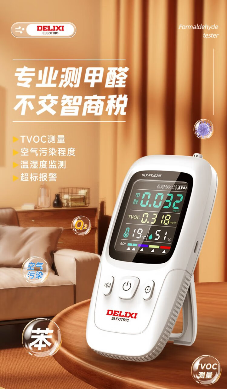 DELIXI ELECTRIC formaldehyde detector professional formaldehyde tester formaldehyde measurement instrument high-precision air detection box household value pack