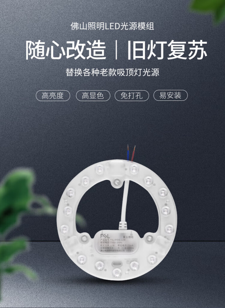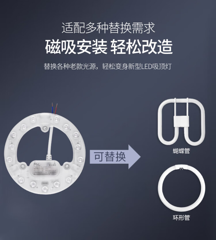 Foshan Lighting (FSL) led ceiling lamp wick replacement magnetic lamp plate patch modification lamp panel energy-saving round lamp 12W/positive white light