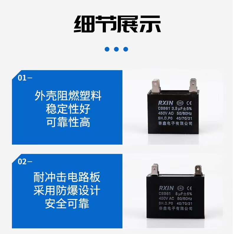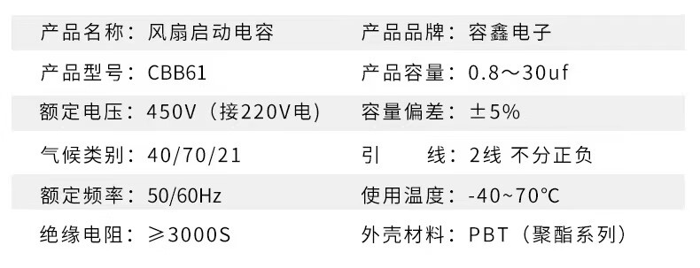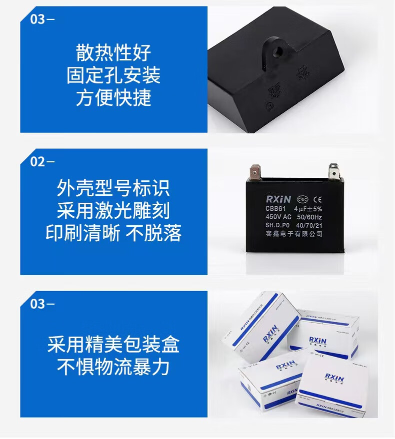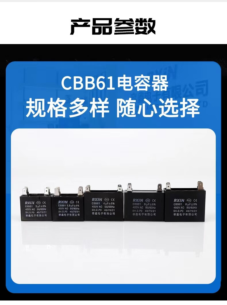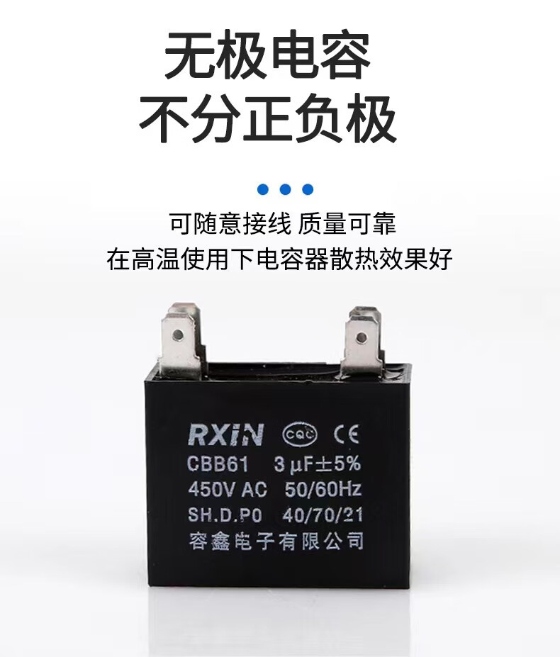 RXiN Rongxin CBB61 blade starting capacitor 450V fan fan double blade starting capacitor 2.0uf