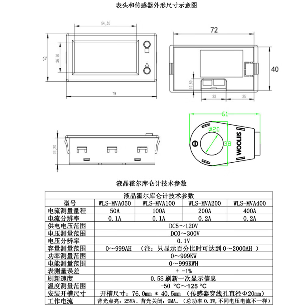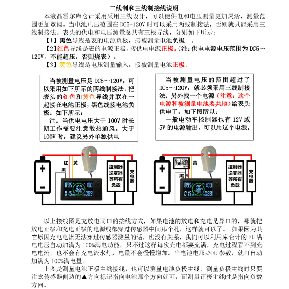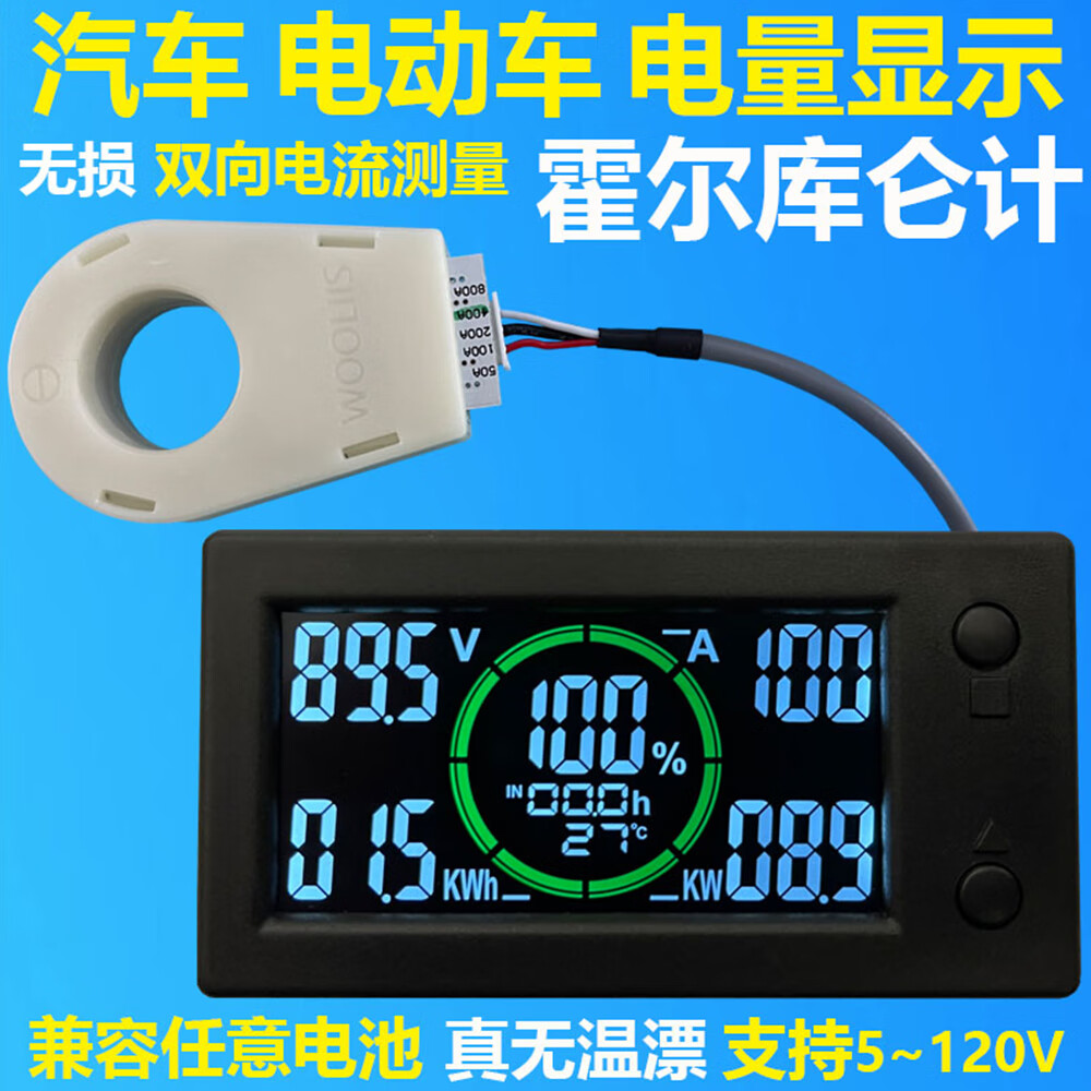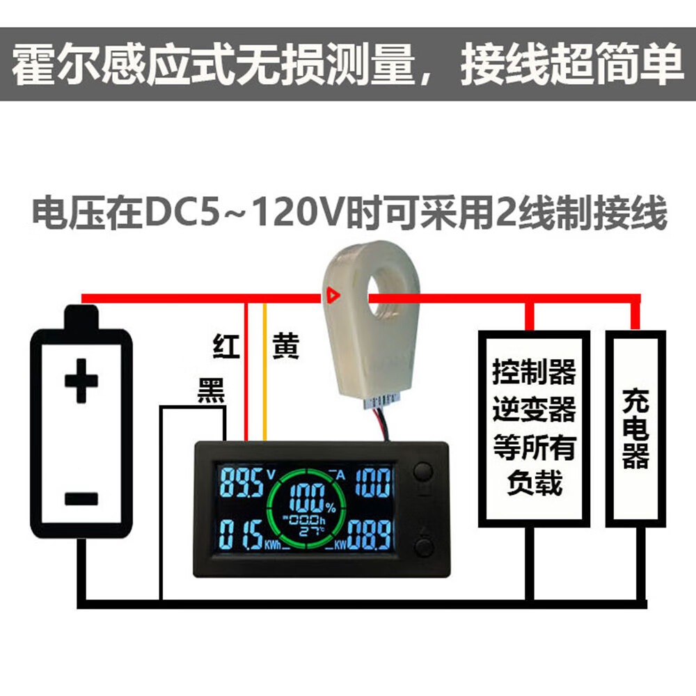 Ohuayuan Color Screen Bluetooth Hall Coulomb Meter Electric Vehicle RV Voltage Current Power Electric Energy Lithium Battery Power Display