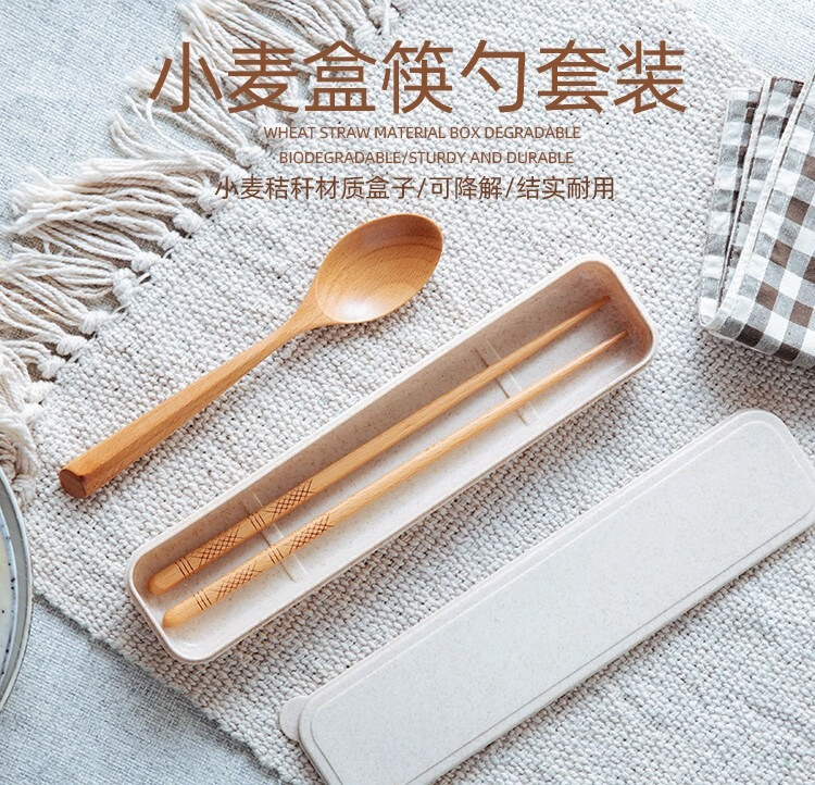 Half-life portable tableware Japanese style wooden chopsticks wooden spoon set wooden chopsticks spoon with storage box student children travel tableware