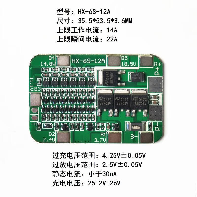 Ouhuayuan 6-string 22V 24V lithium battery charging protection board module BMS power tool solar lighting