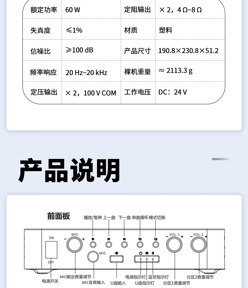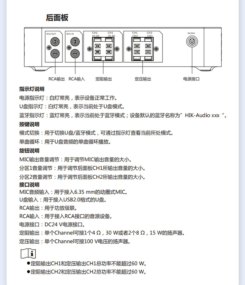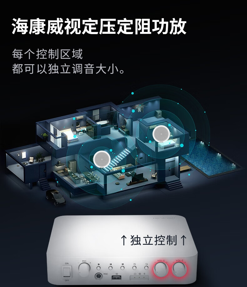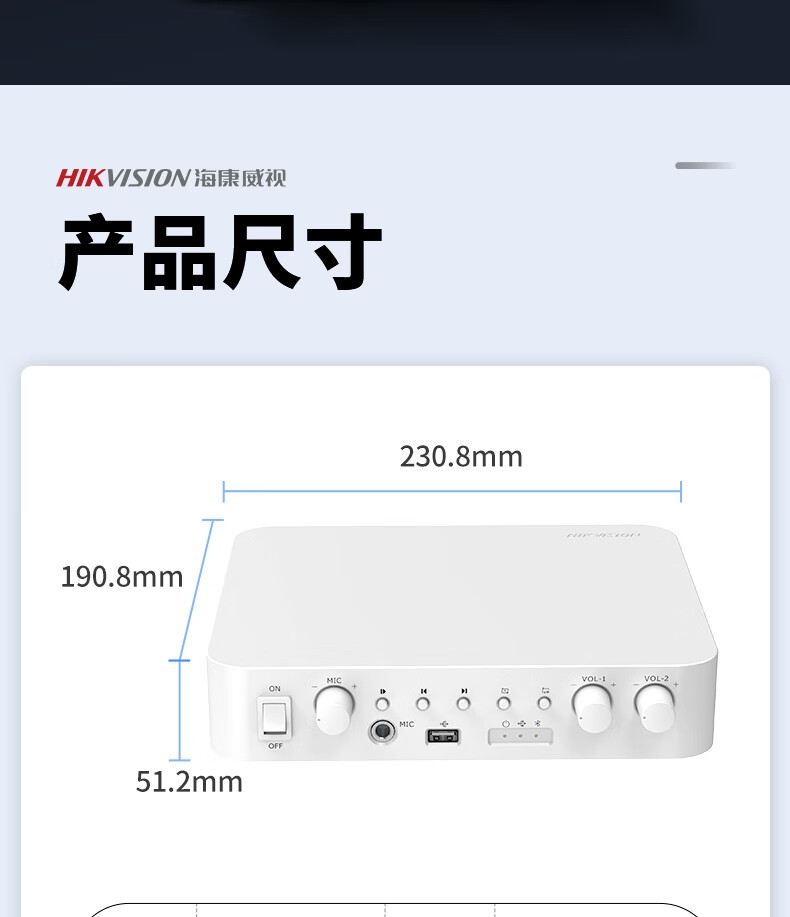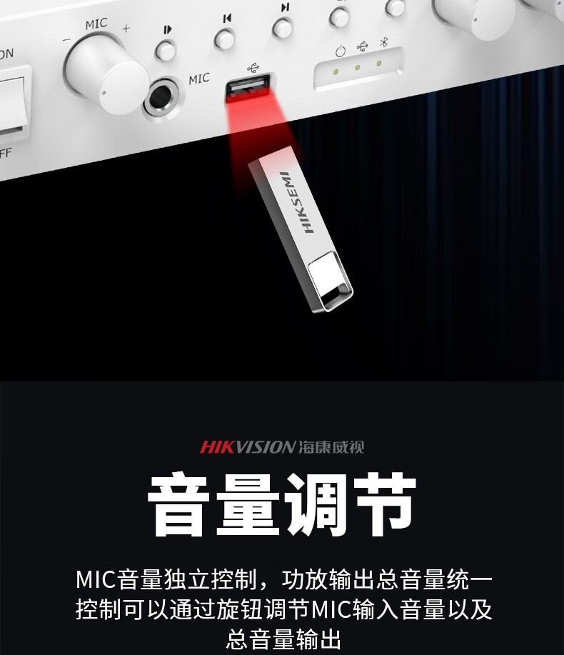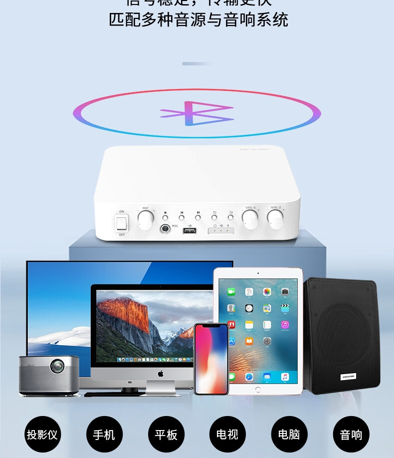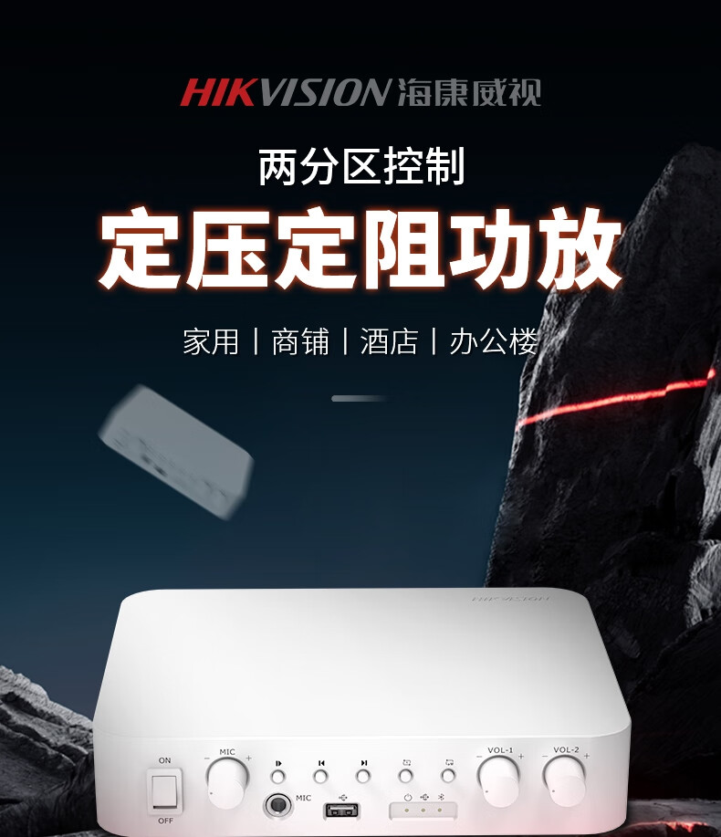 Hikvision (HIKVISION) Bluetooth fixed resistance and constant voltage power amplifier campus shopping mall public address system home MP3 lossless decoding integrated player power amplifier U disk playback microphone interface