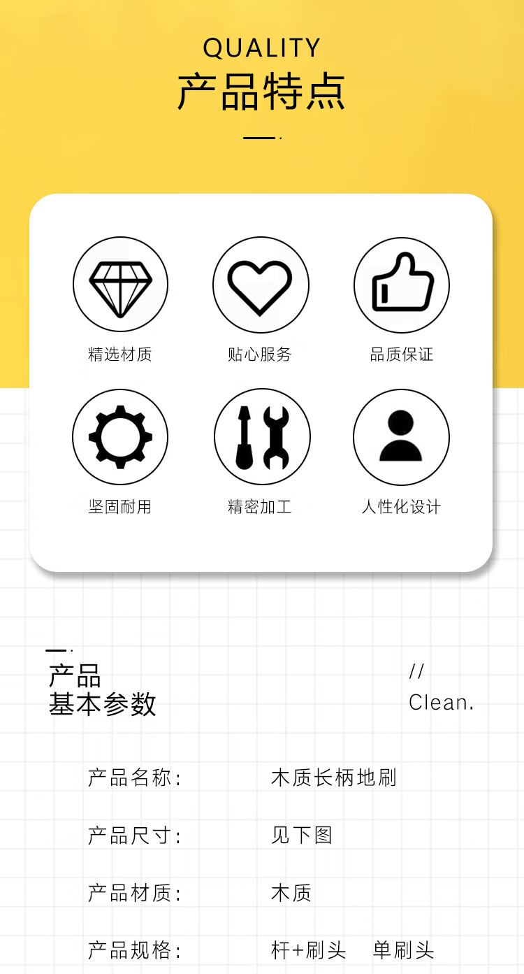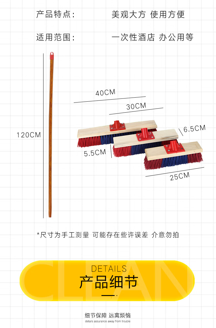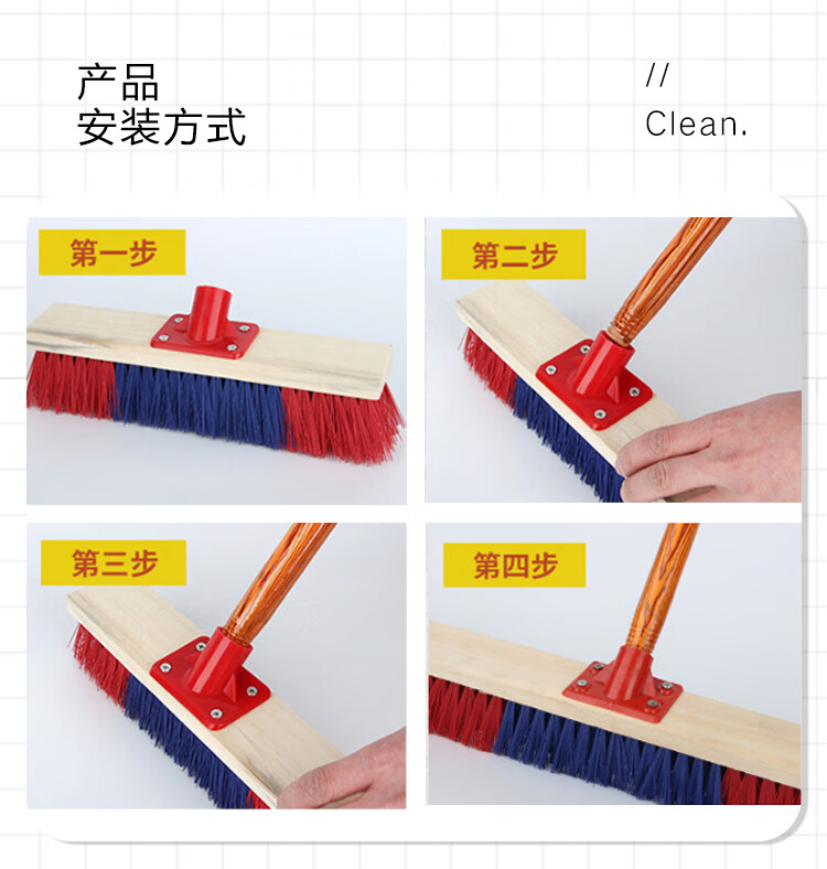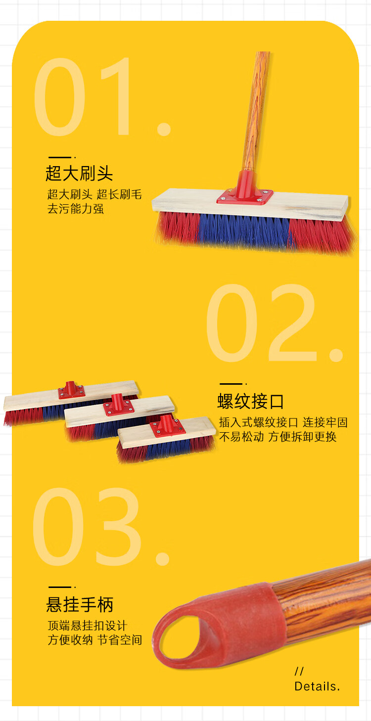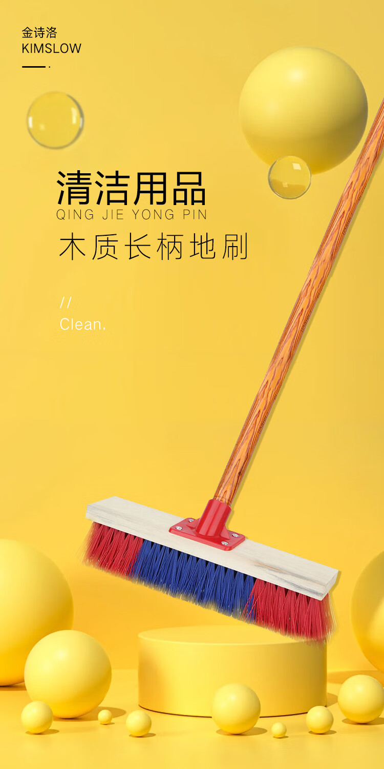 Jin Shiluo Wooden Long Handle Floor Brush 30CM Brush Head with Rod 5 Clean Solid Wood Brush Hard Bristle Bathroom Floor Tiles KT-211