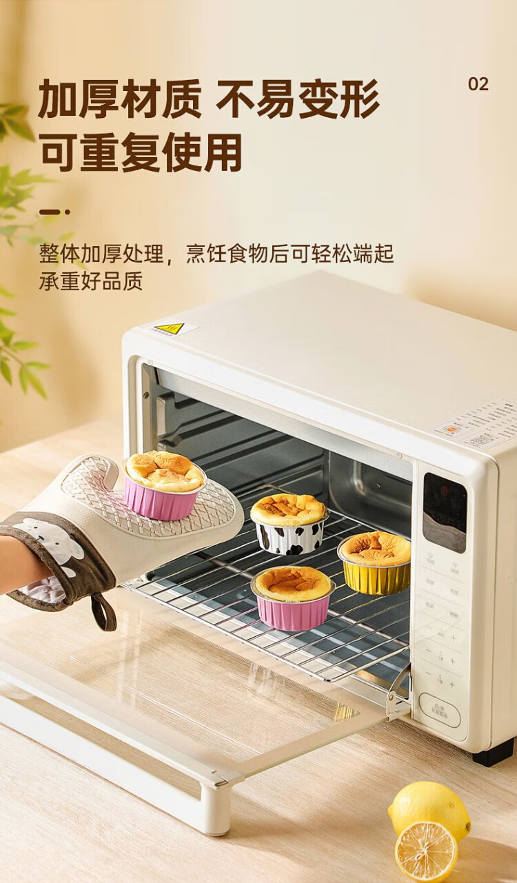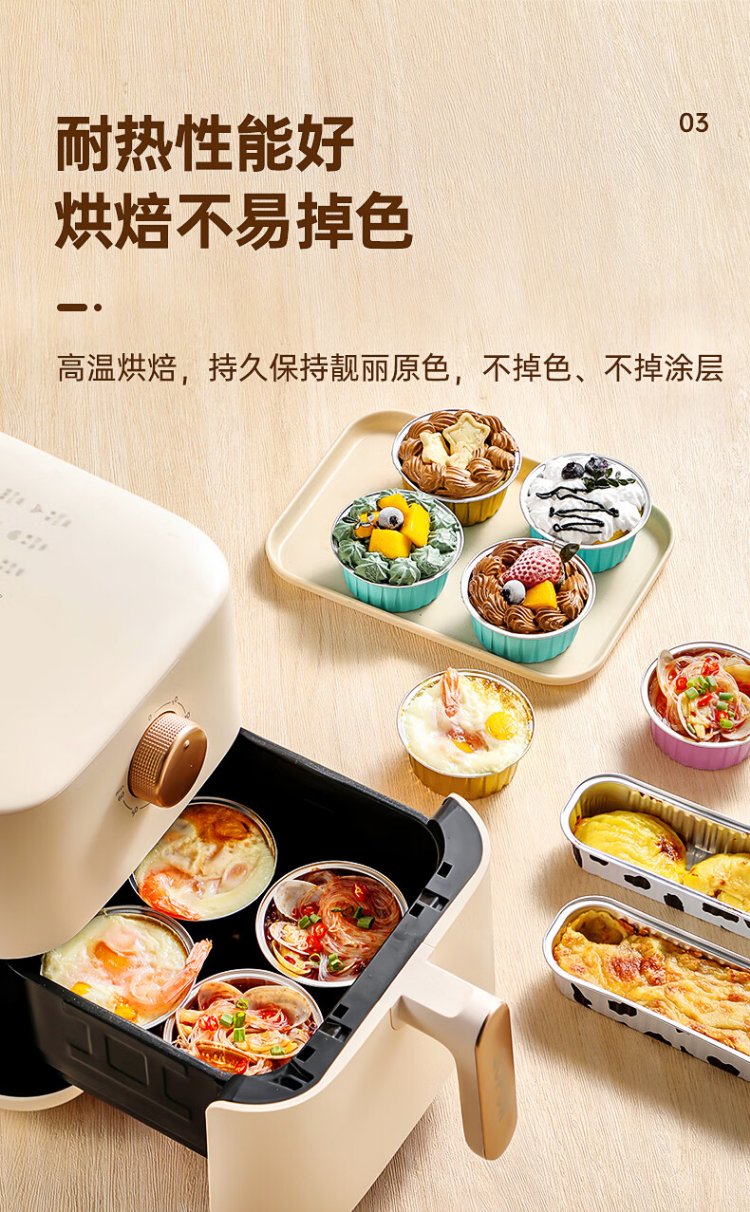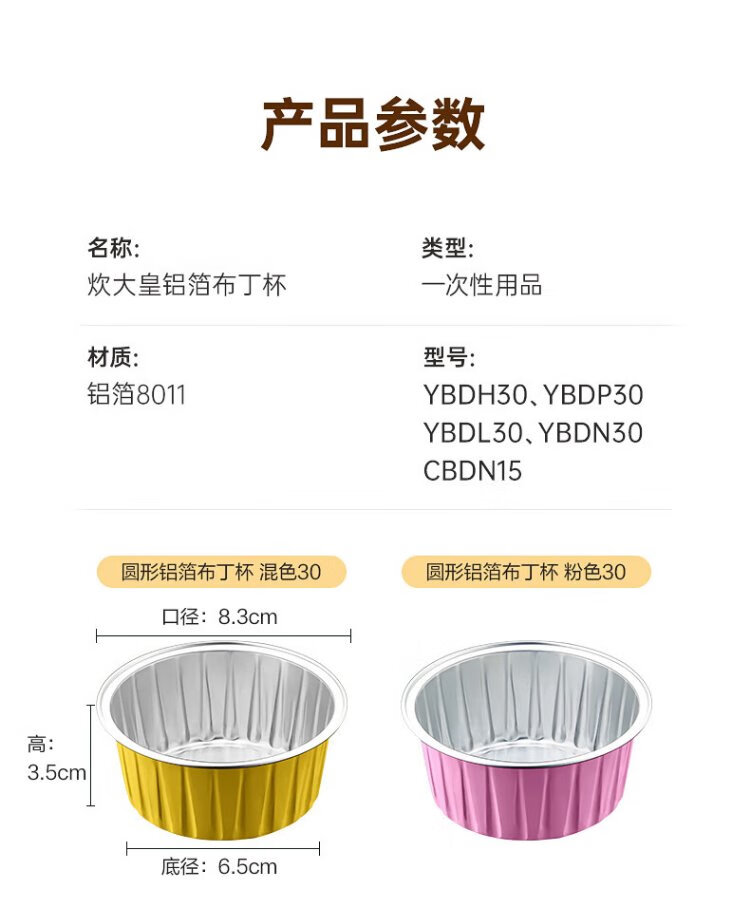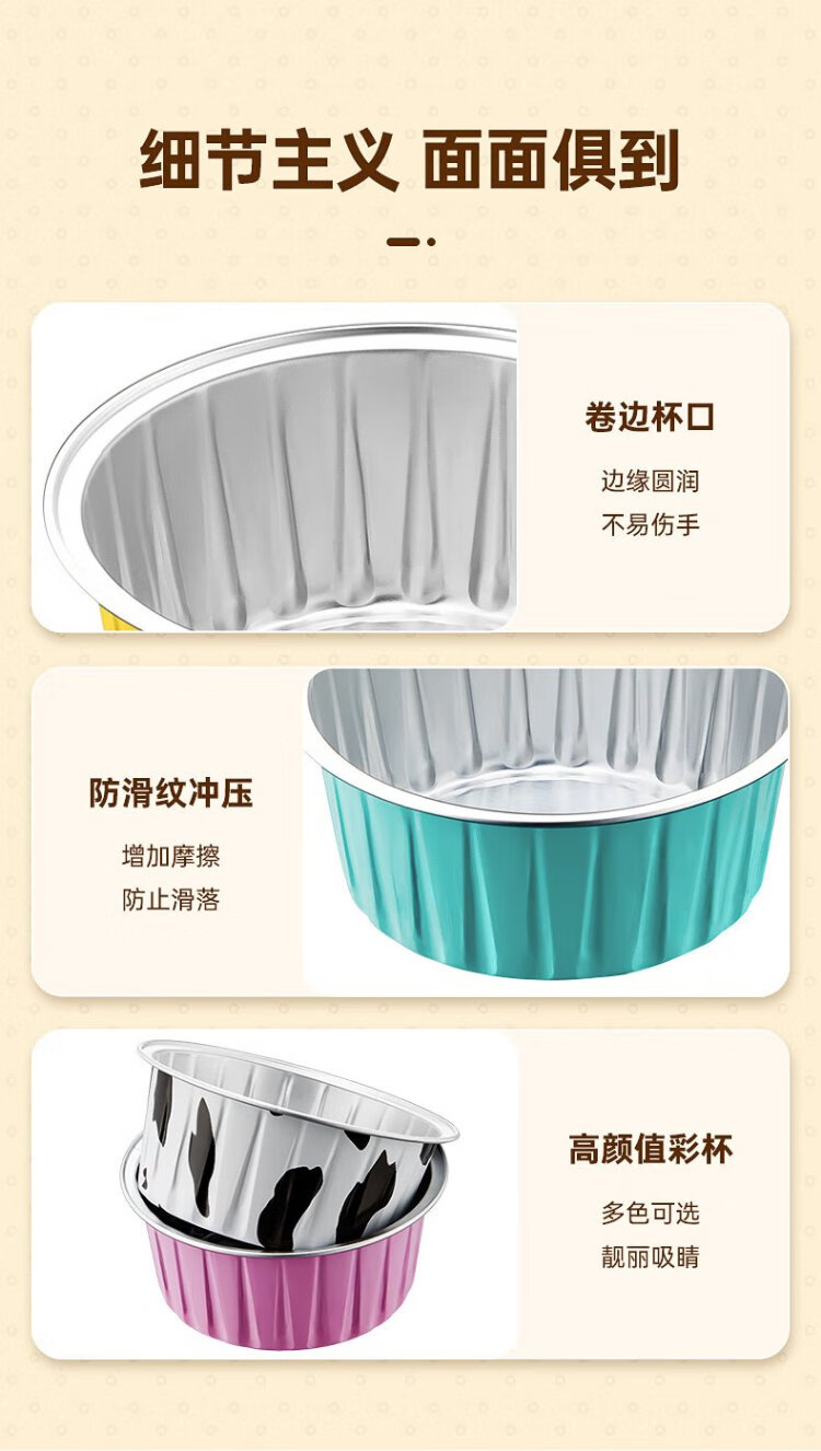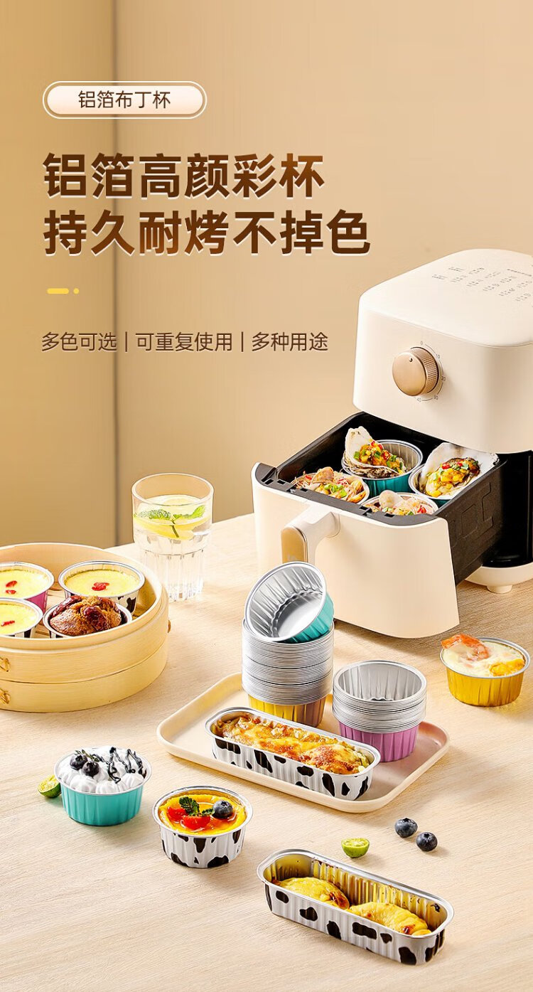 Cui Dahuang aluminum foil pudding cup mold cake mold air fryer tin foil bowl baking round mixed color 30 pieces