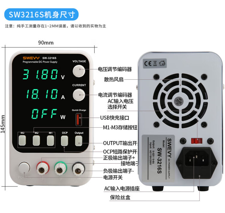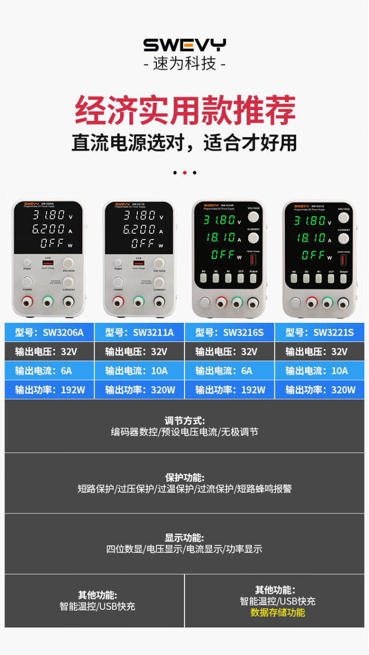 Suwei adjustable power supply DC regulated power supply regulator 32V10A computer mobile phone repair switching power supply SW3221S