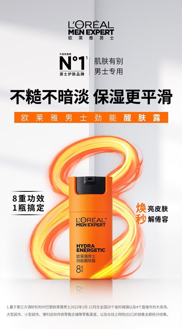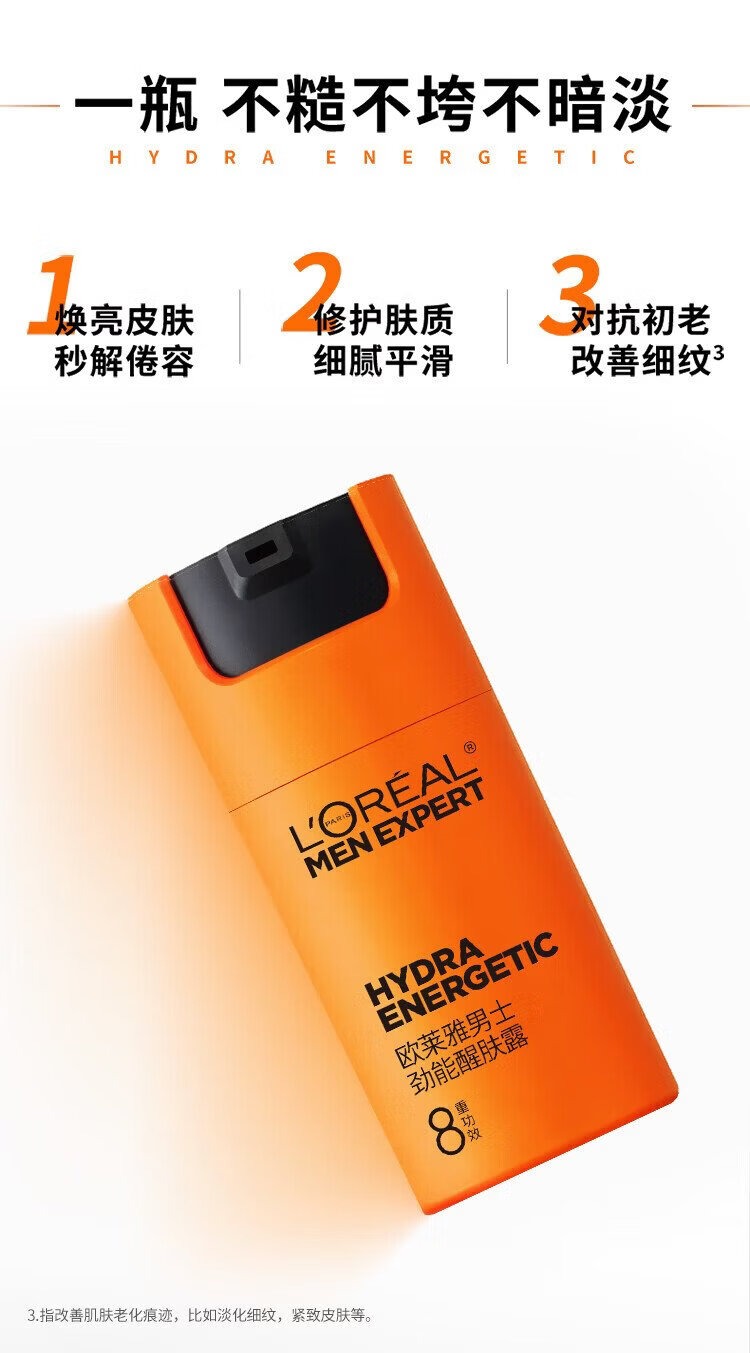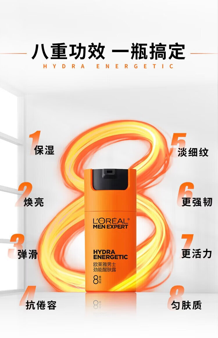 L'Oreal Men's Eight-fold Function Men's Energy Awakening Lotion 50g 8-fold Function Moisturizing and Smoothing Autumn and Winter
