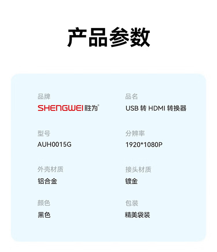 Shengwei USB to HDMI converter adapter 1080p high-definition same-screen dual-screen expansion notebook/host external graphics card connection TV projector display AUH0015G