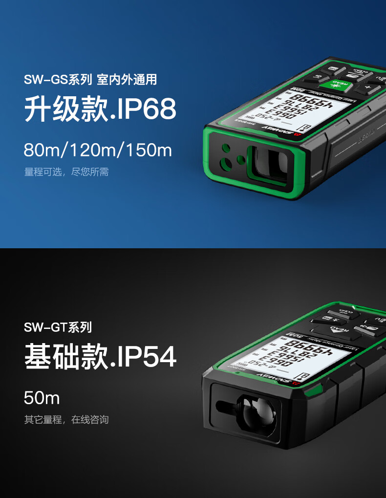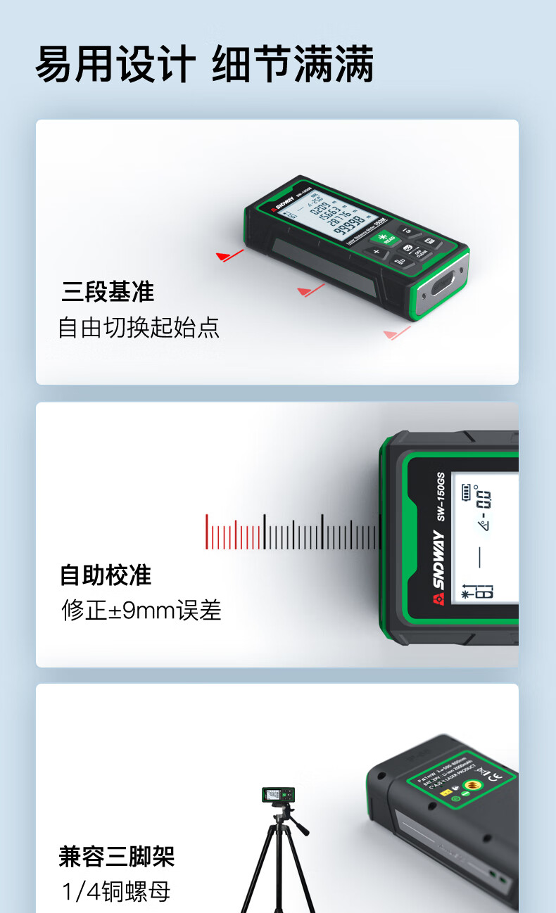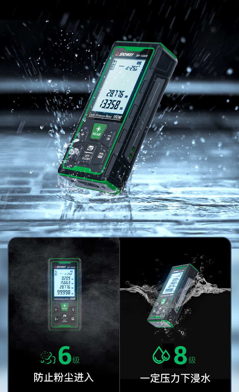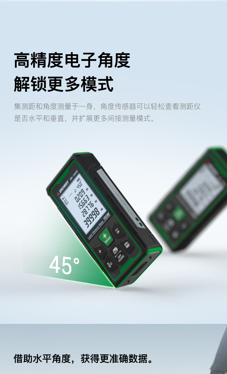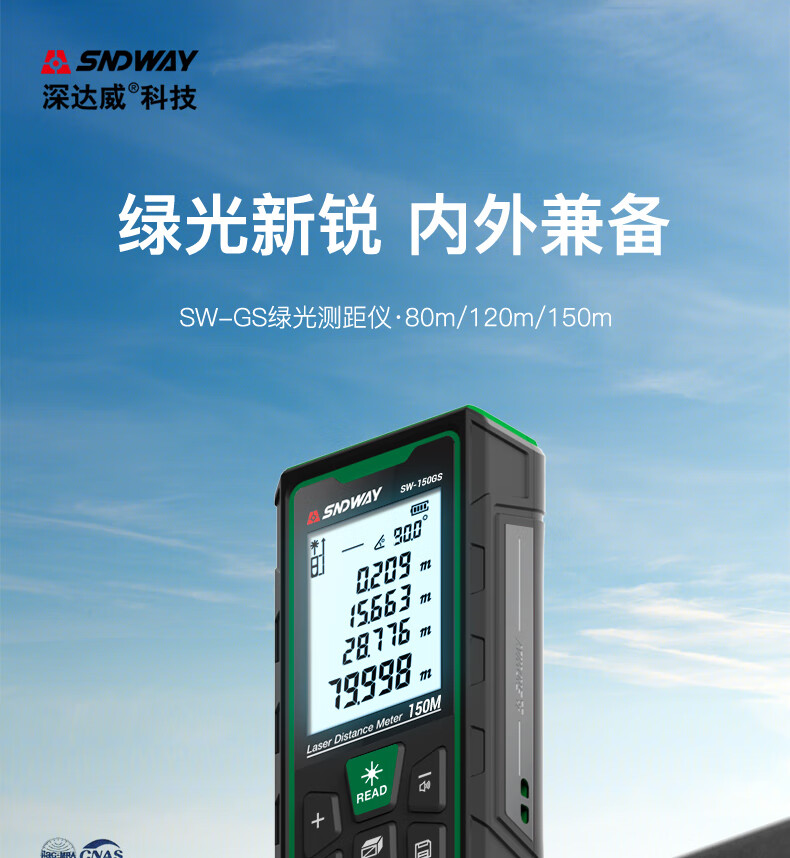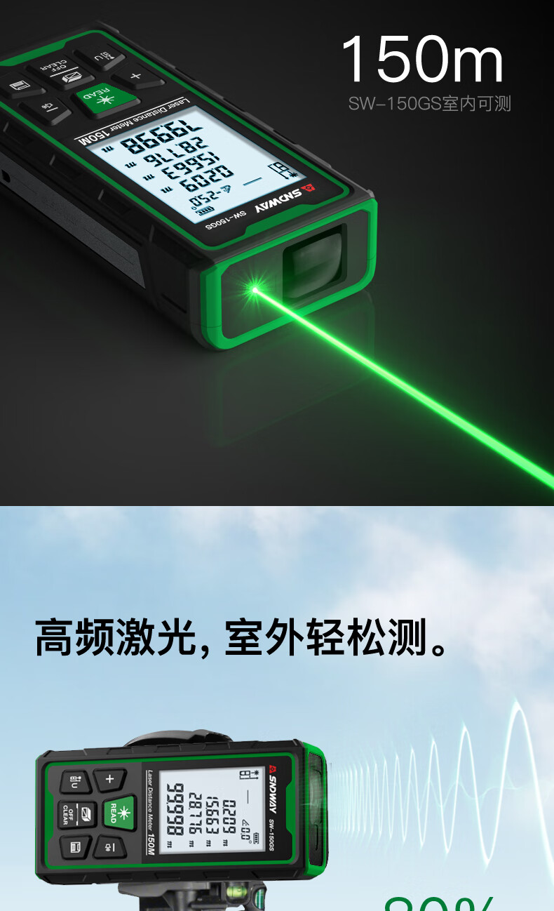 SNDWAY laser rangefinder green light laser ruler room measuring instrument rechargeable handheld SW-120GS