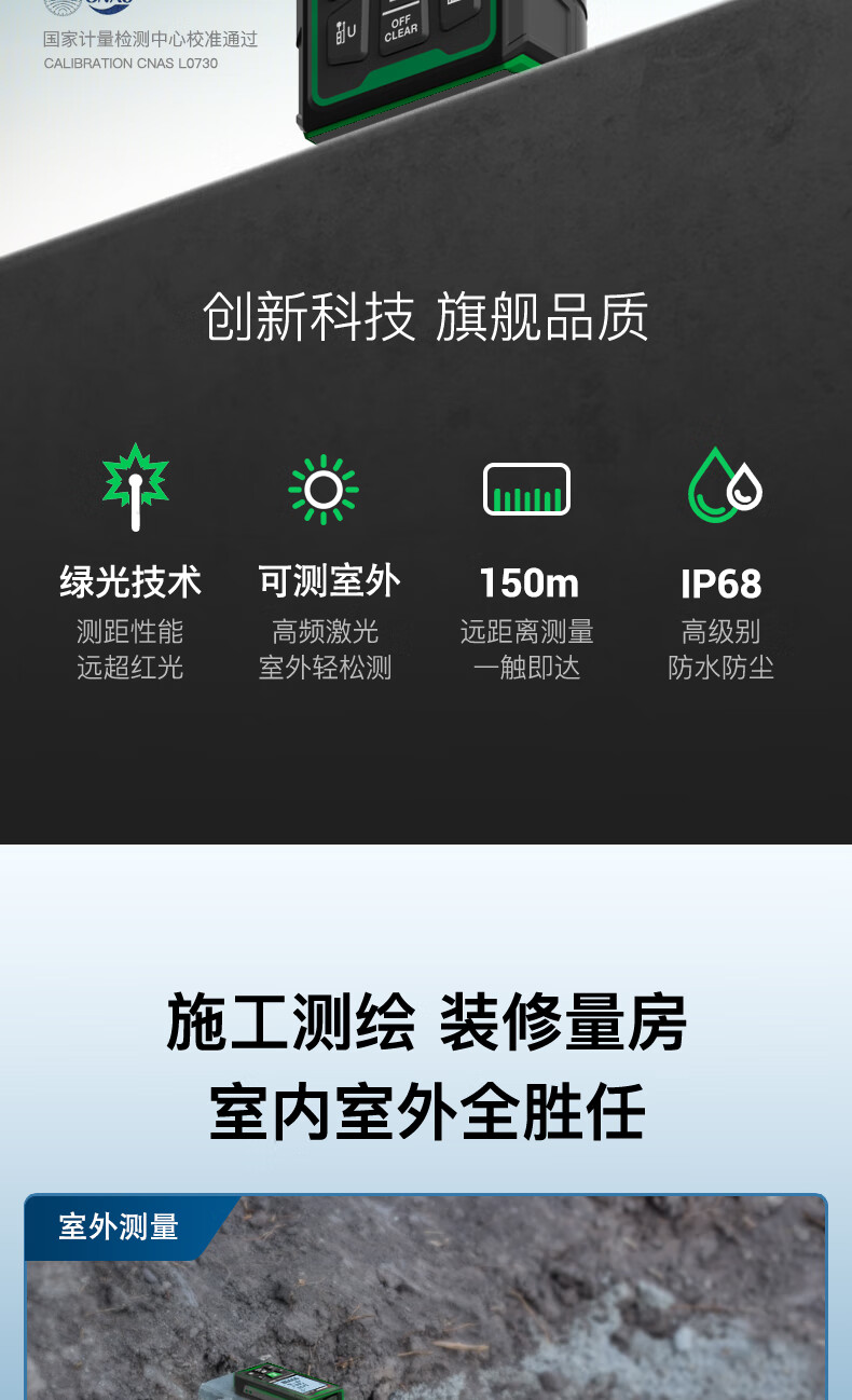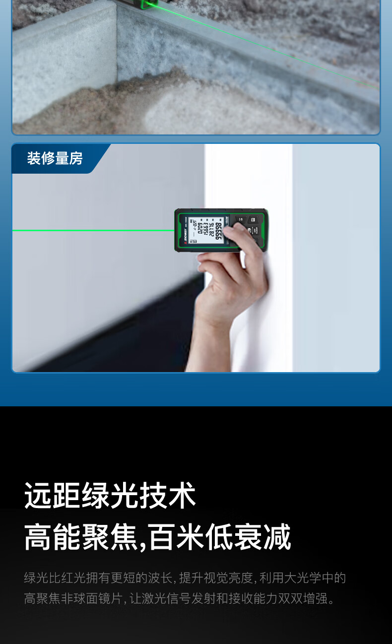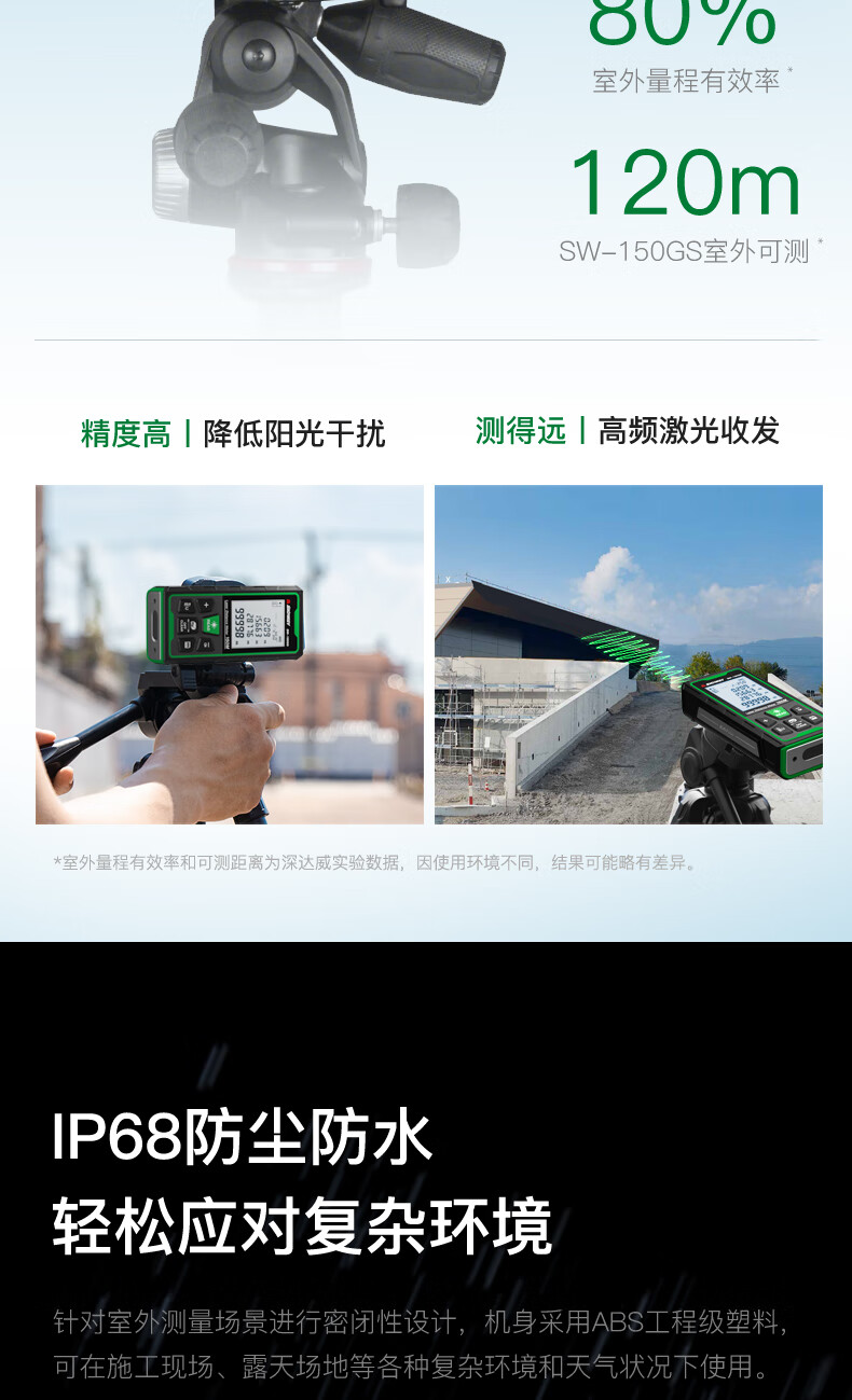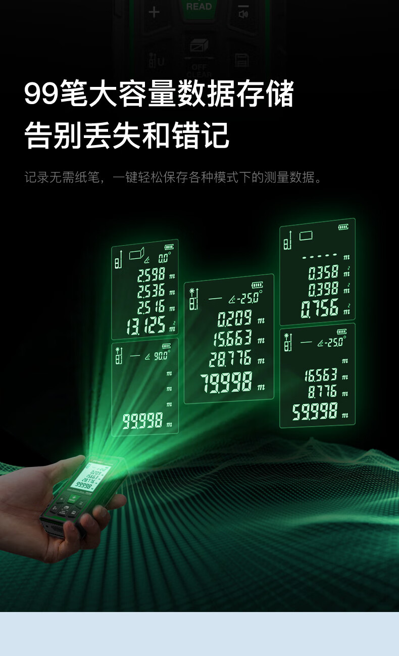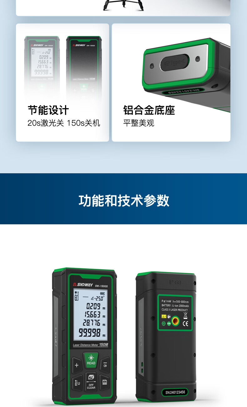 SNDWAY laser rangefinder green light laser ruler room measuring instrument rechargeable handheld SW-120GS
