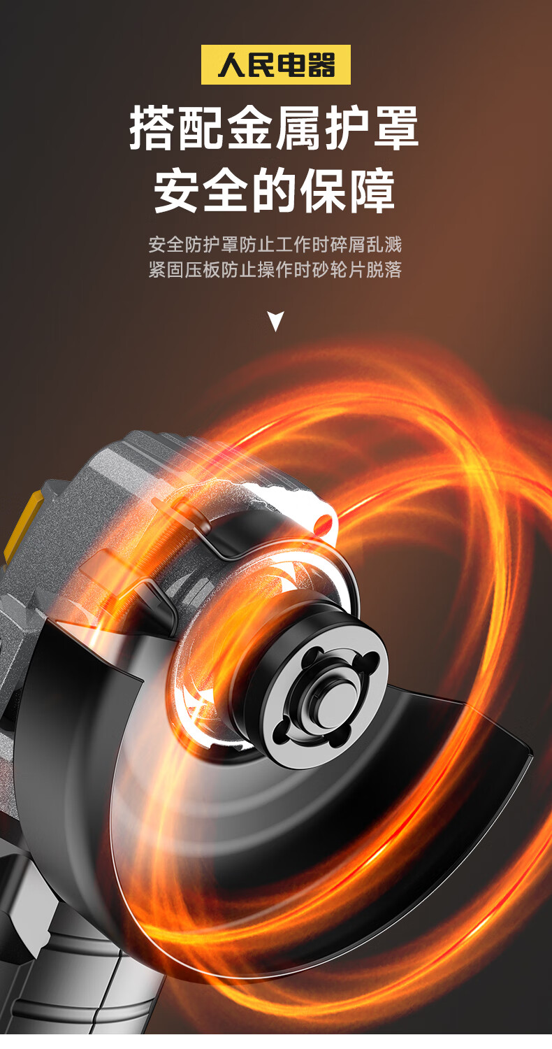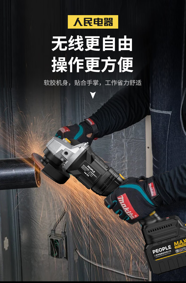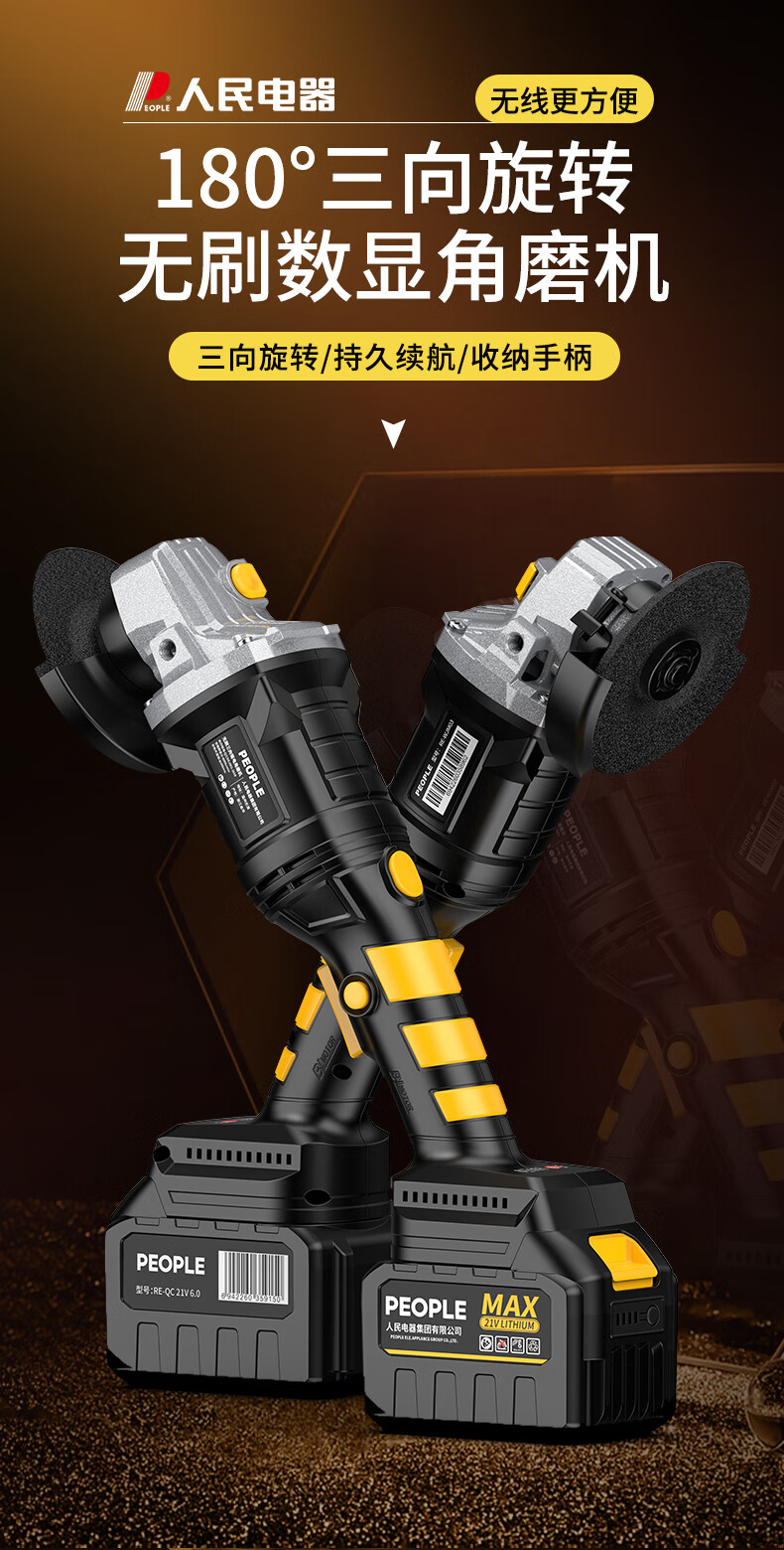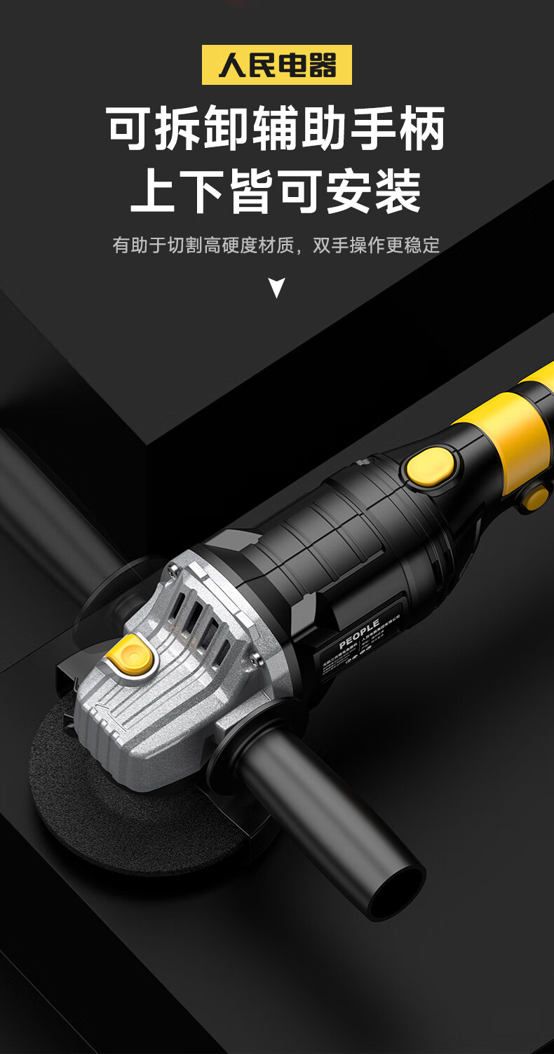 People's Brushless Lithium Electric Angle Grinder Polisher Grinder Rechargeable Multi-Function Cutting Machine Angle Grinder Power Tool