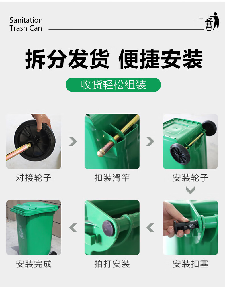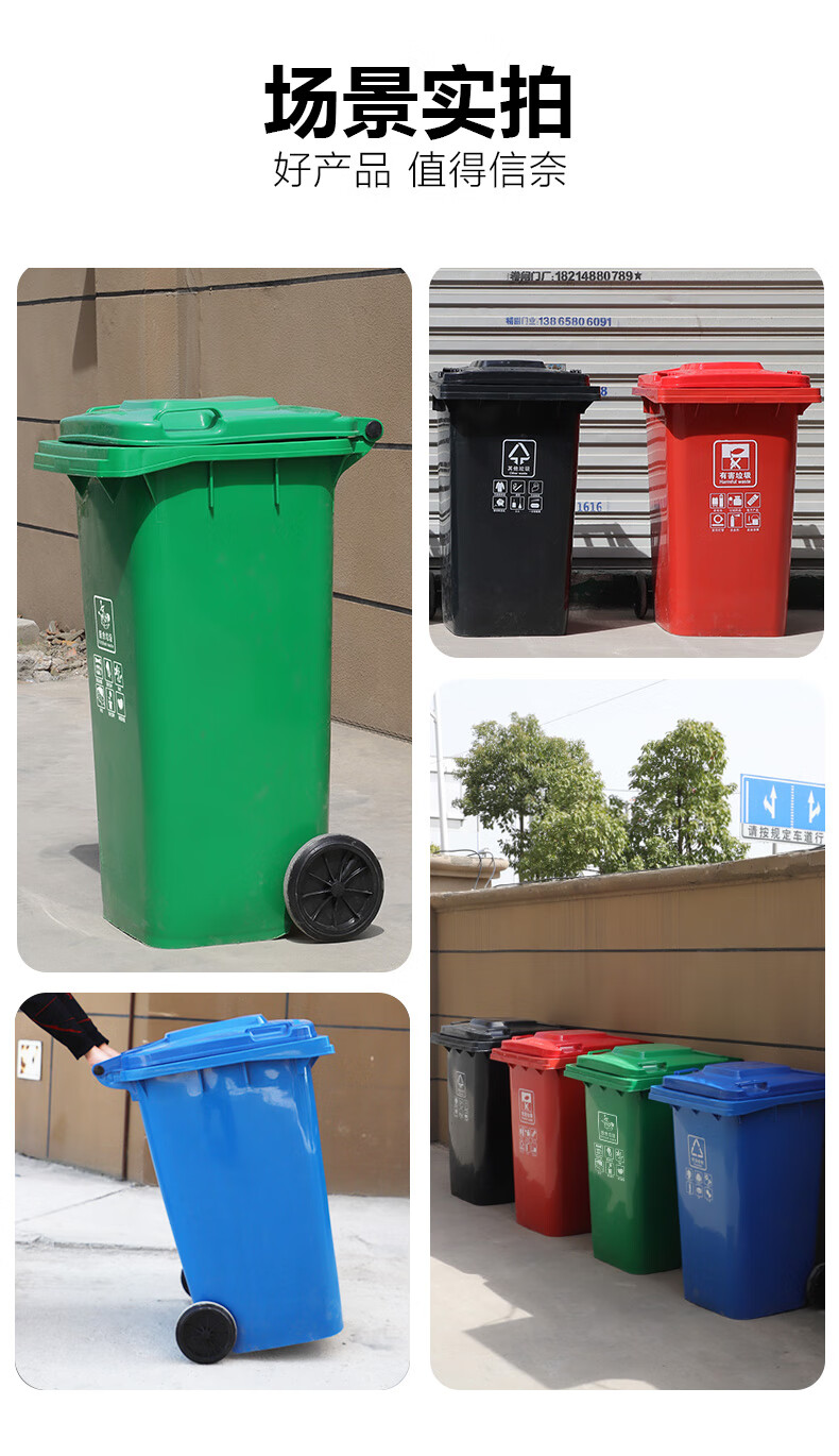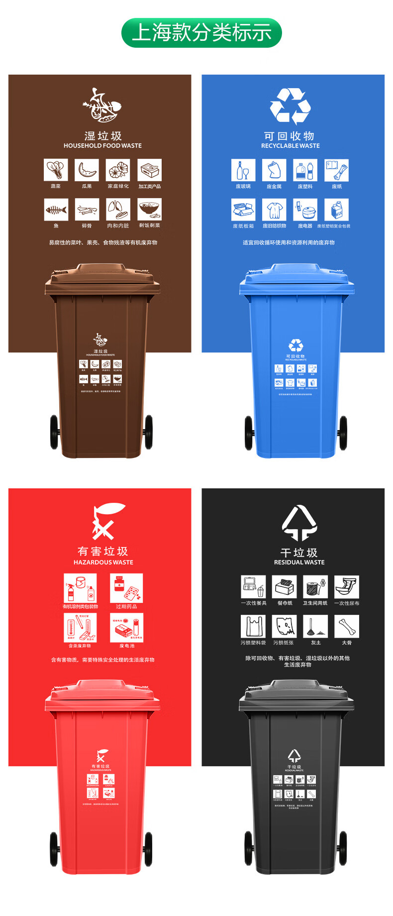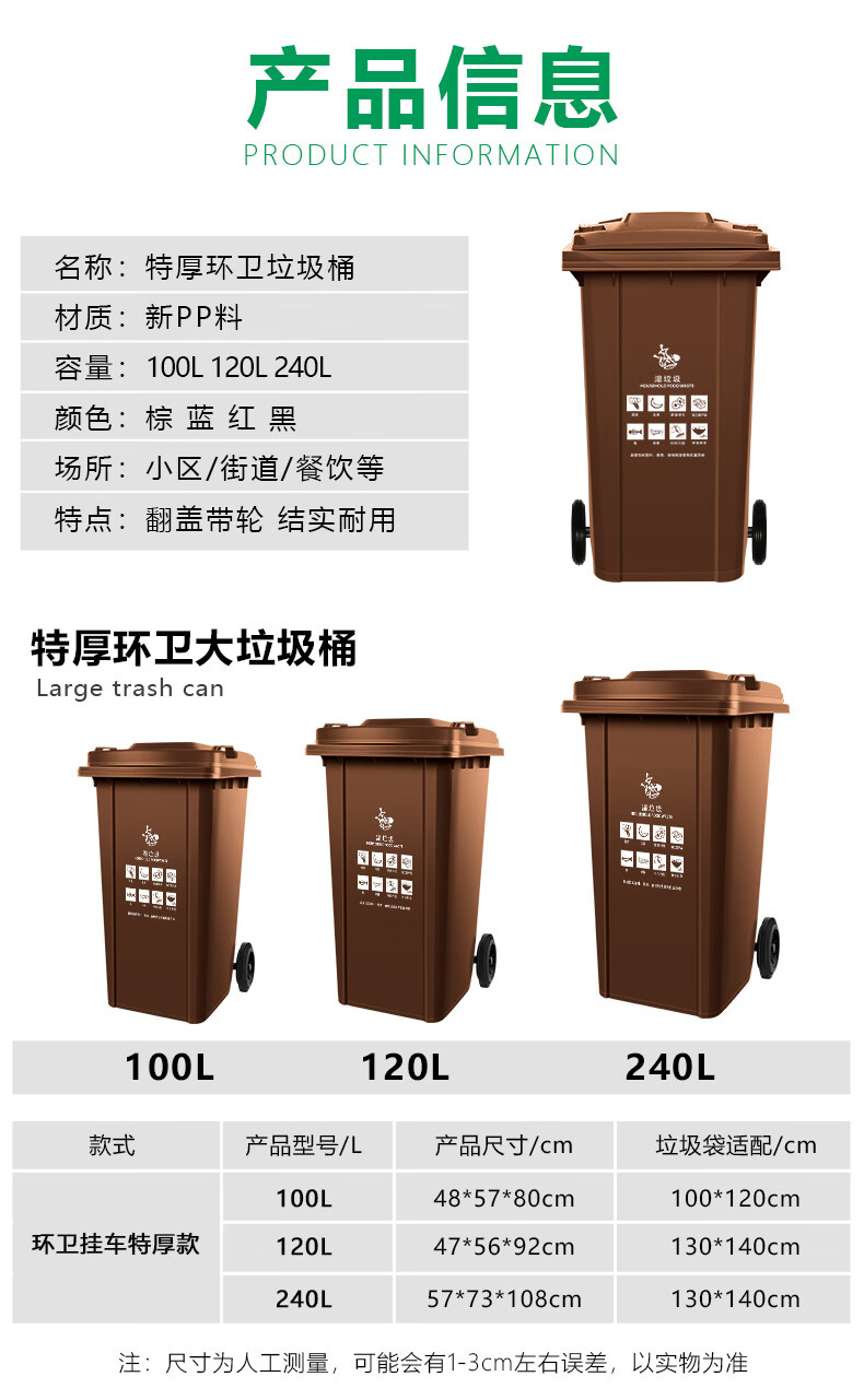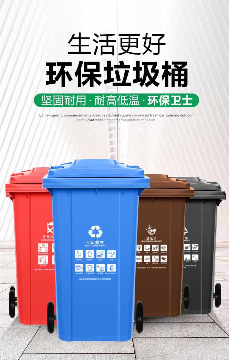 Tianshu 240-liter plastic sanitation trash can with wheels, clamshell classification, thickening, trailer-type room, outdoor large size, large capacity, property, hotel, commercial, Shanghai standard brown (wet garbage)