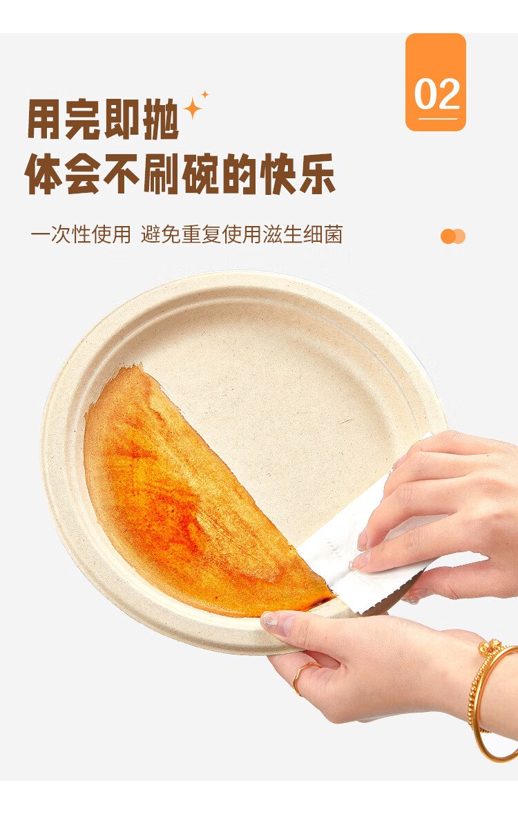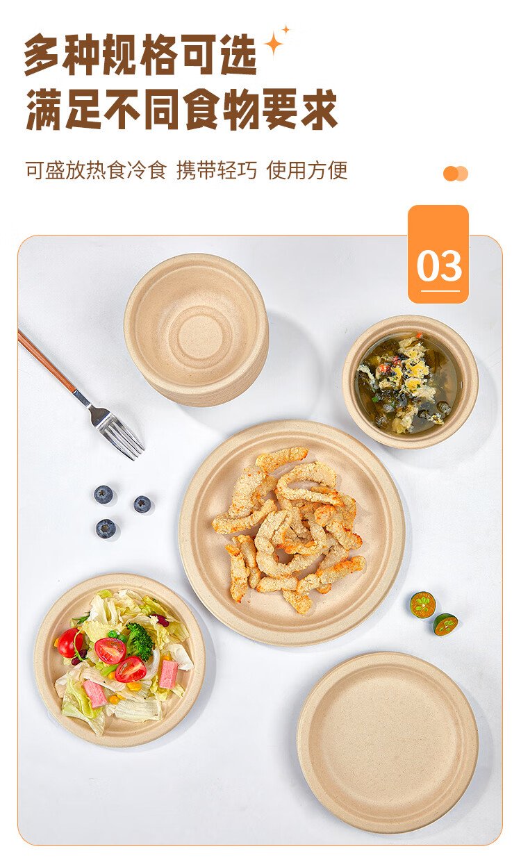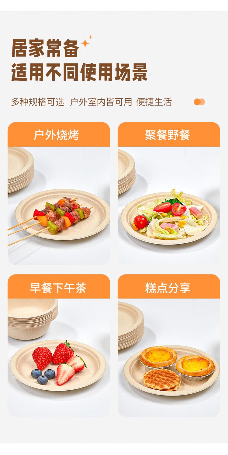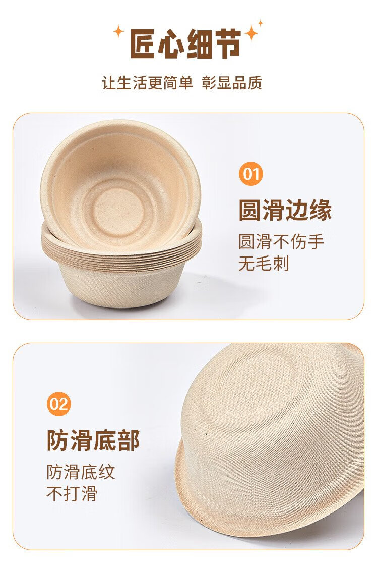 SHUANG YU sugarcane pulp paper plate paper bowl disposable tableware waterproof and oil-proof natural color degradable round bowl 350ml 30 pieces