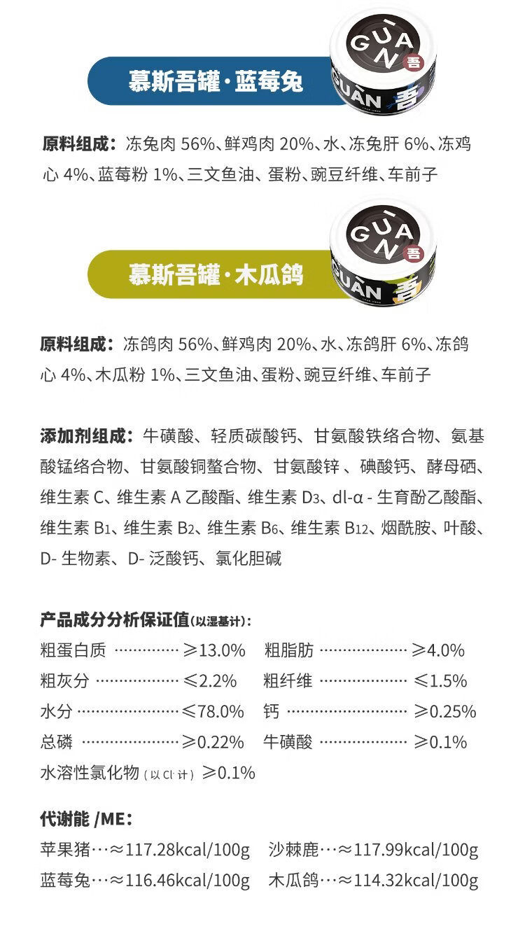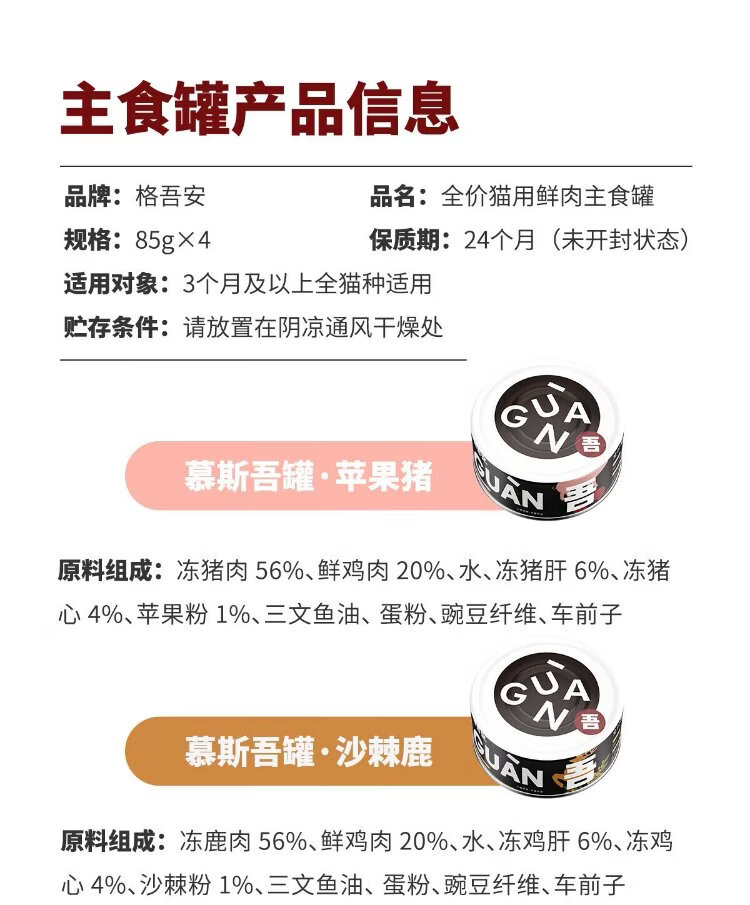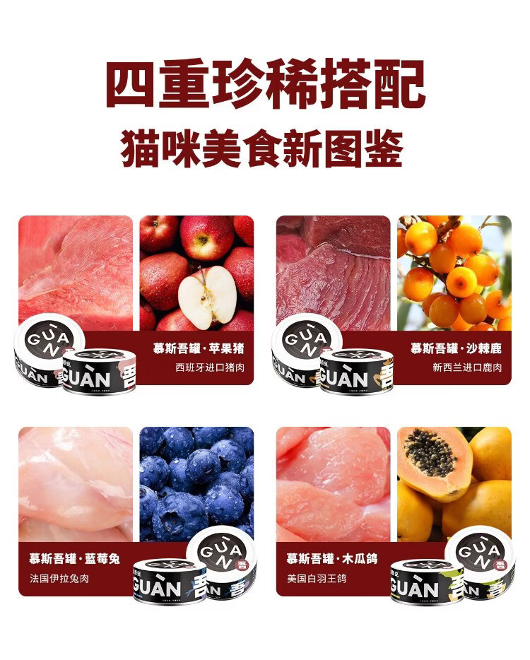 Gewuan cat staple food canned adult cat full price cat wet food rare pork venison rabbit meat pigeon meat mixed flavor 85g*4 cans