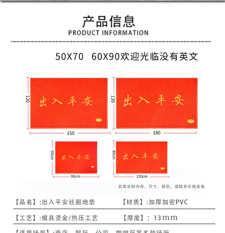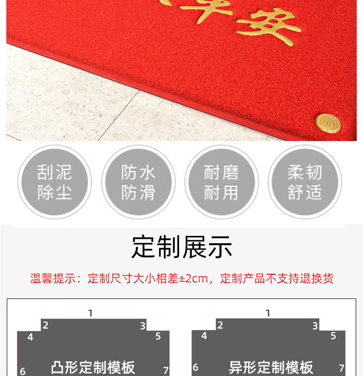 Jushiyi red silk circle non-slip floor mat thickened encrypted PVC no words 120*180cm non-slip waterproof wear-resistant red carpet 13mm