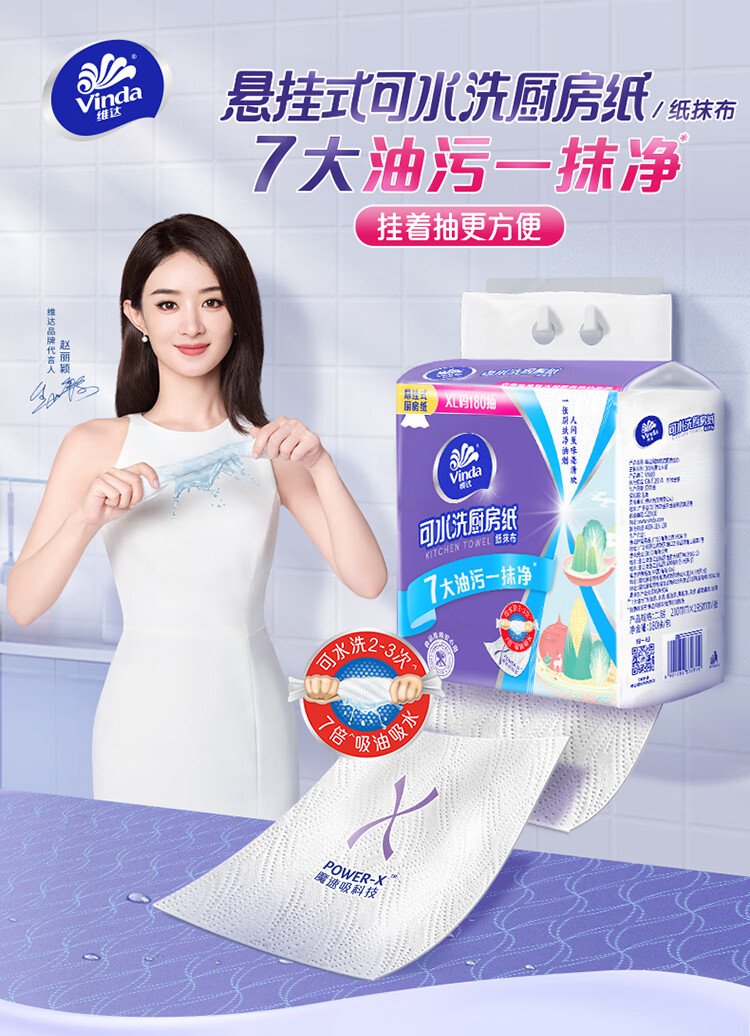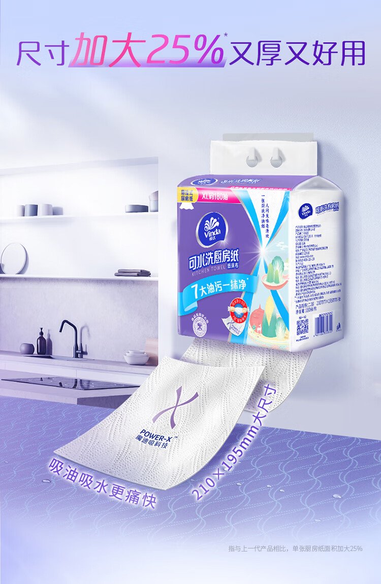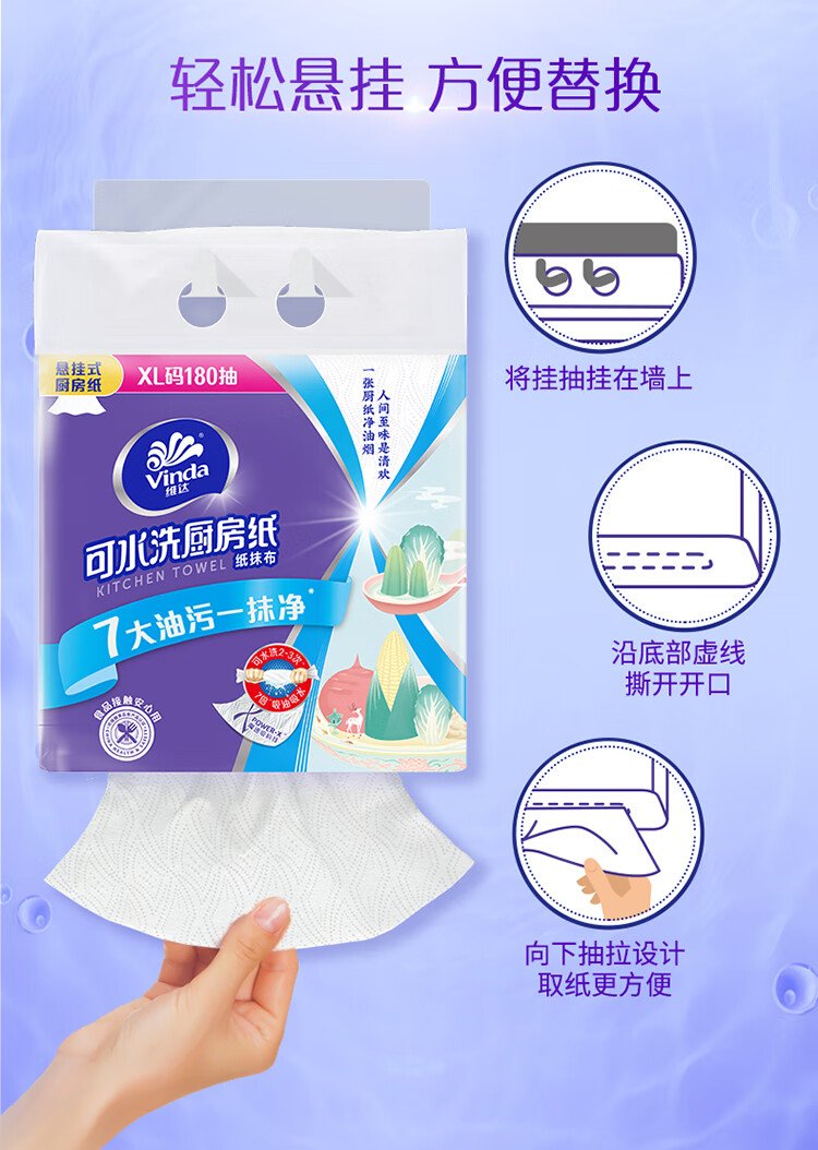 Vinda kitchen paper hanging paper towel 180 pieces* single load thick and tough oil-absorbent new and old random food-grade