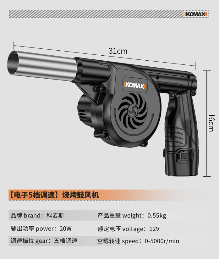 Komax blower household barbecue carbon wood stove 12v small outdoor fire high-power powerful lithium hair dryer