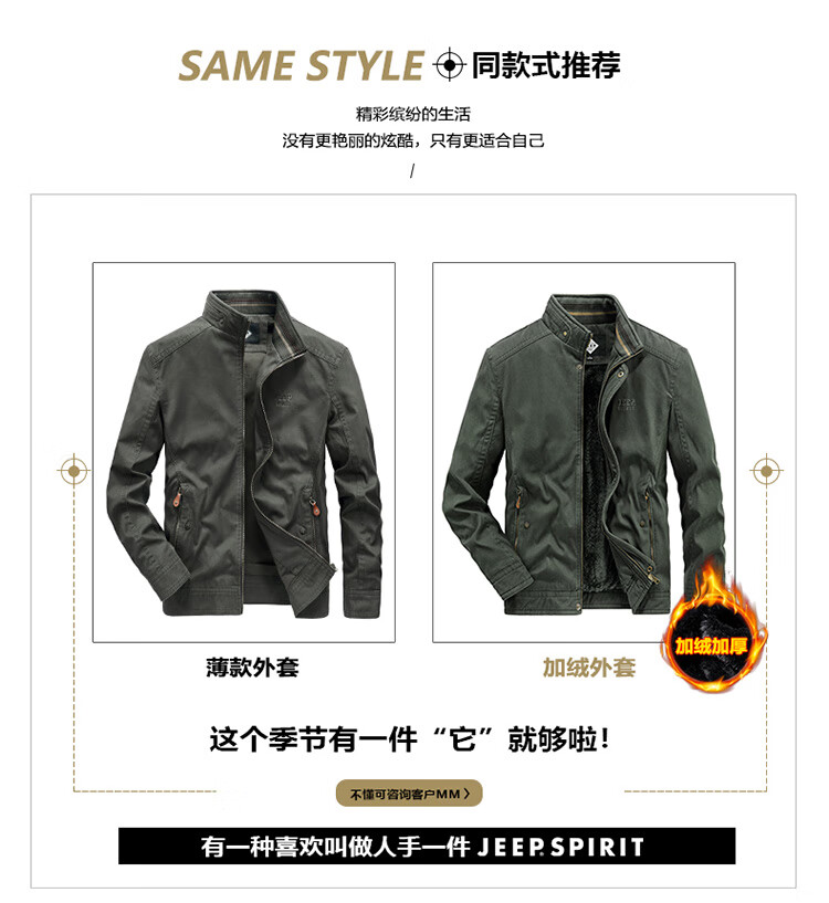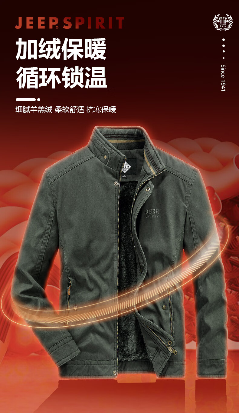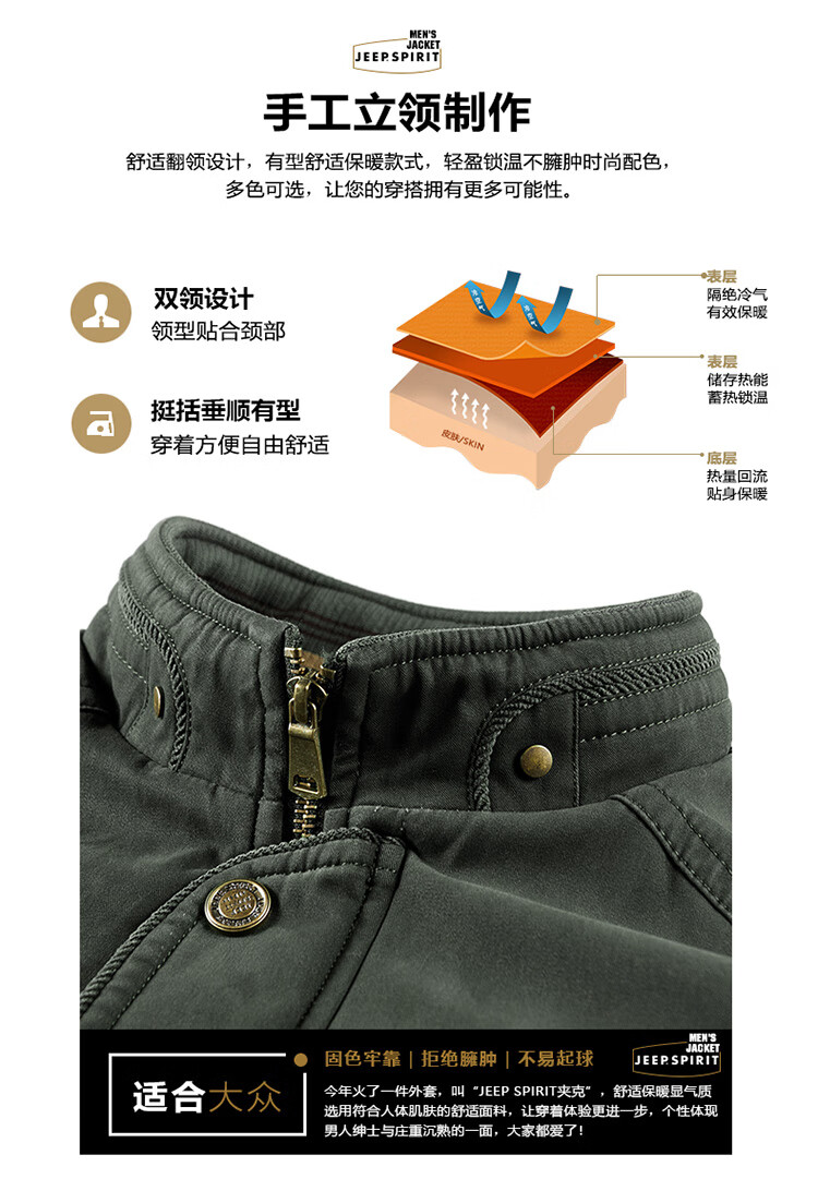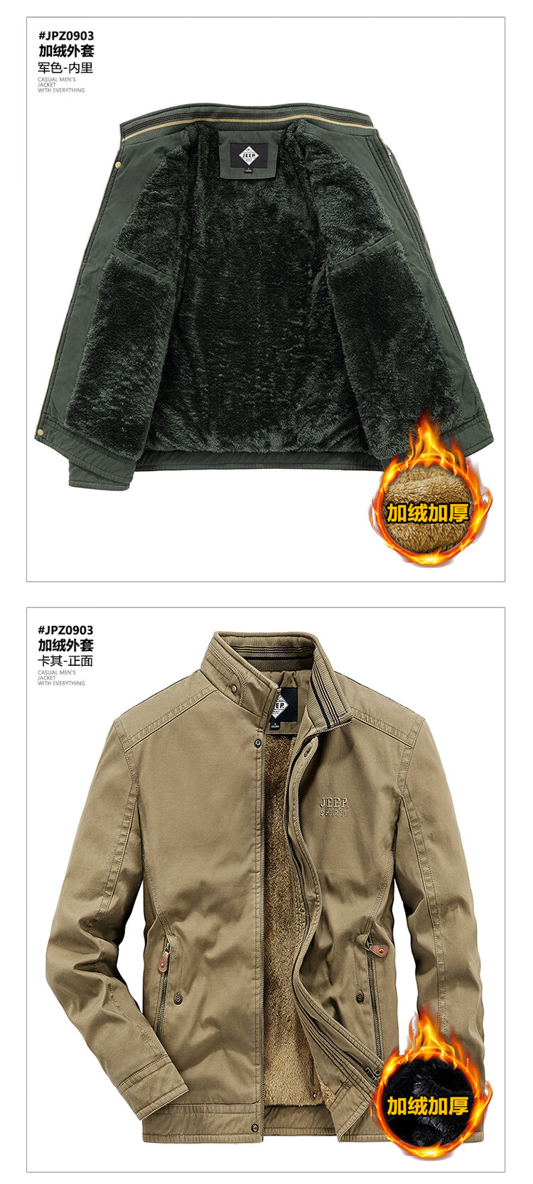 JEEP SPIRIT Jeep cotton jacket men's velvet thickened warm jacket men's autumn and winter high-end workwear cotton coat men's cotton jacket top