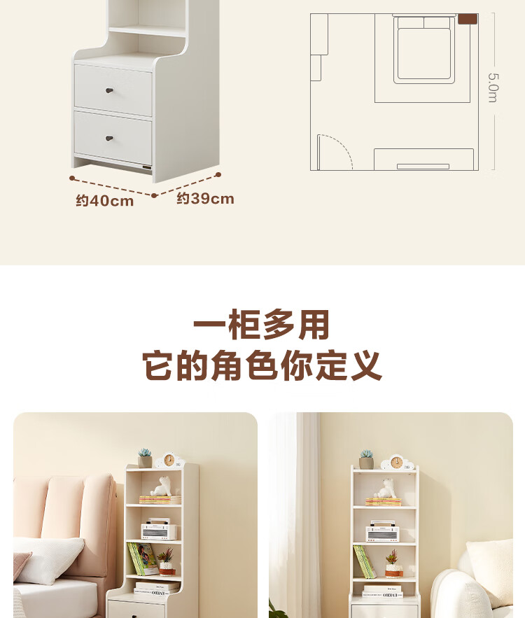 Quanyou Home Bedroom Furniture Sundry Storage Cabinet Bedside Table Multi-purpose Cabinet Living Room Sofa Side Cabinet Storage Cabinet High Cabinet