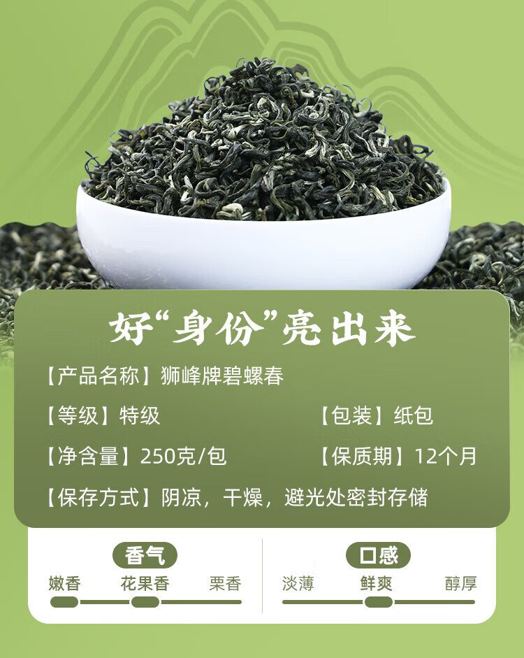 Shifeng brand green tea Biluochun tea Mingqian special grade 250g lion green paper bag gift box for elders to give gifts to drink for yourself