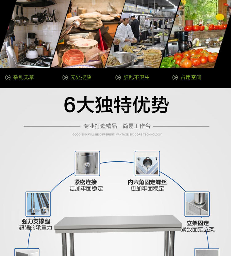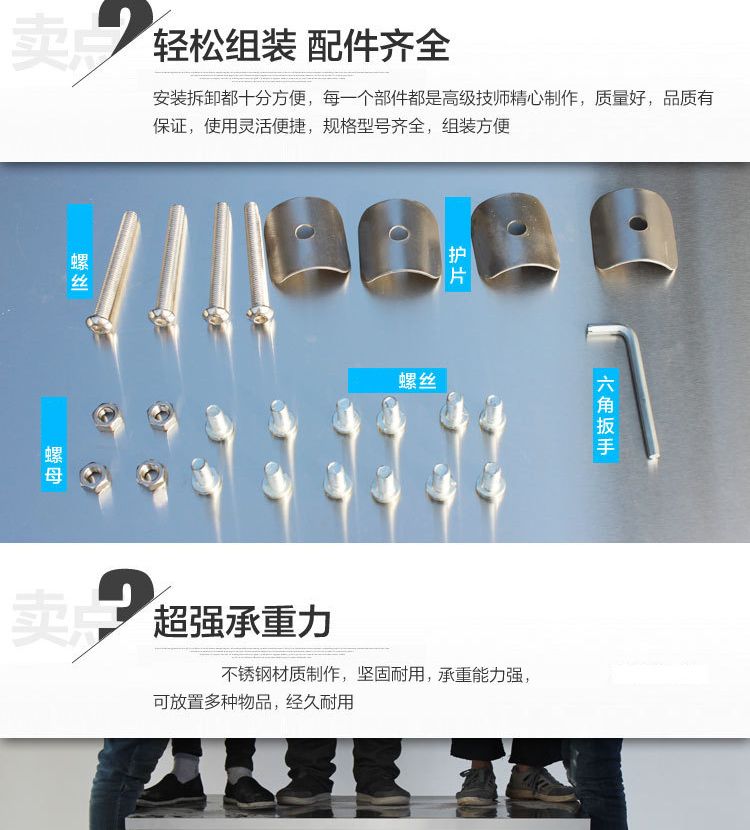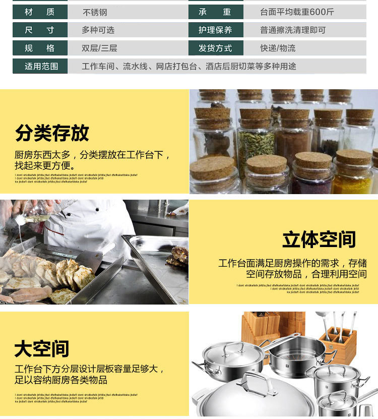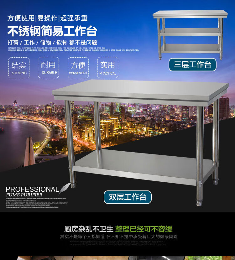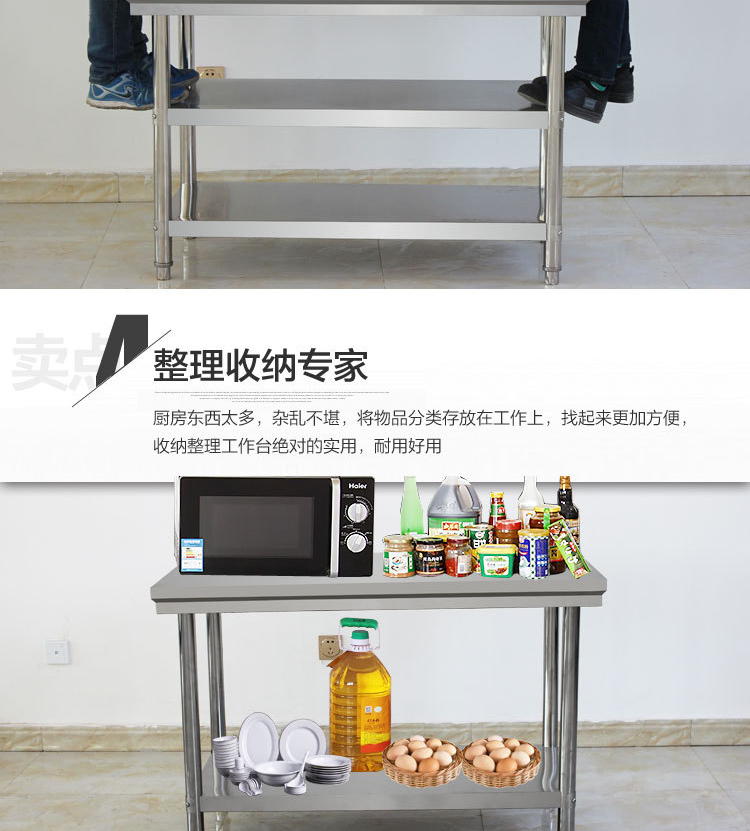 Bingyu removable stainless steel workbench two-layer storage rack operation table commercial work table loading table 120*60*80cm double layer BYS-353