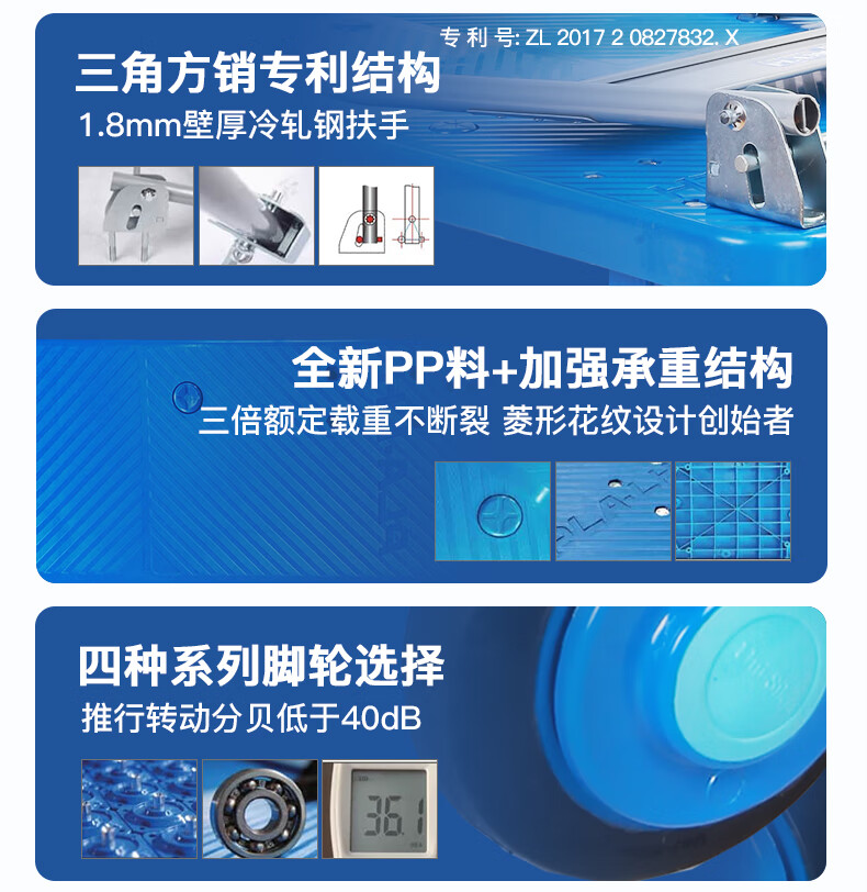 Lianhe (uni-silent) folding flat trolley, load capacity 600 catties, 90*60cm, 5-inch ultra-quiet rubber wheels + nylon bracket, decoration moving truck trolley PLA300-DX